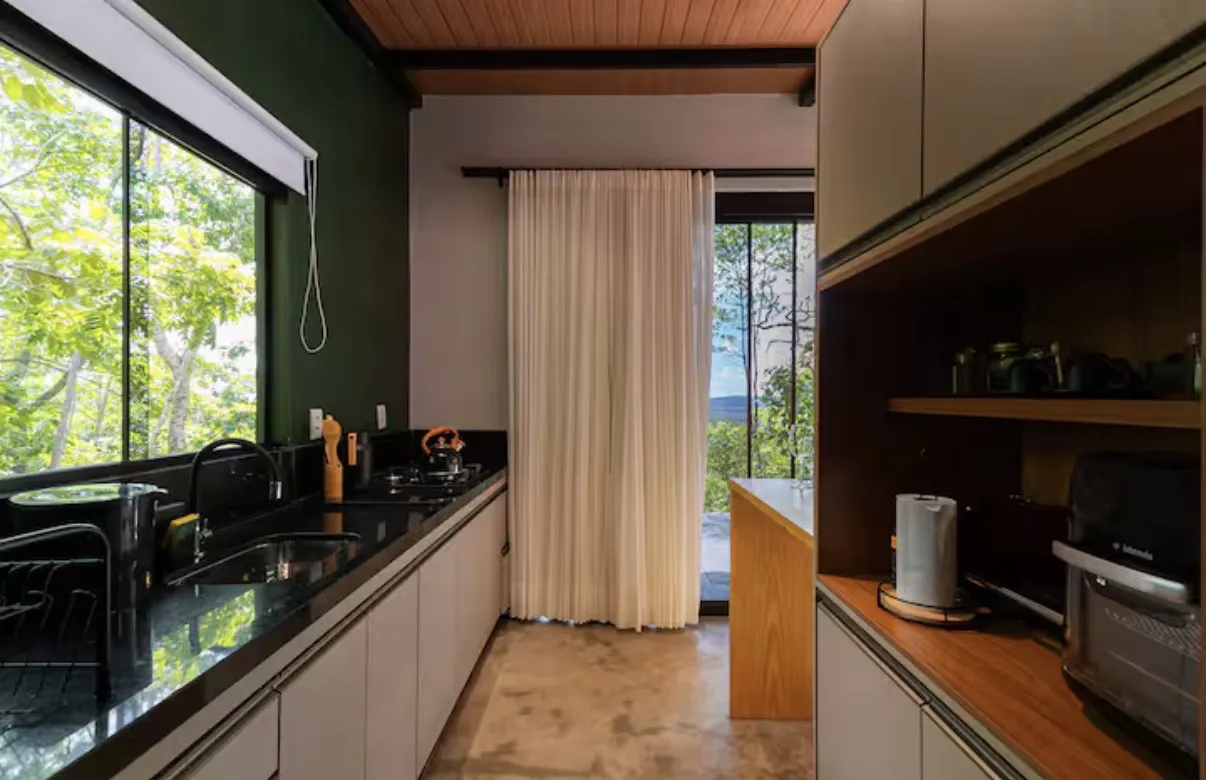 O espaço oferece total privacidade, com ambientes acolhedores e estrutura completa para garantir o bem-estar dos hóspedes. O chalé conta com aquecimento a gás no chuveiro e na banheira, água proveniente de nascente natural e toda a comunicação é feita virtualmente, assegurando uma estadia prática e reservada. Um refúgio único para quem deseja viver dias memoráveis em meio à natureza.