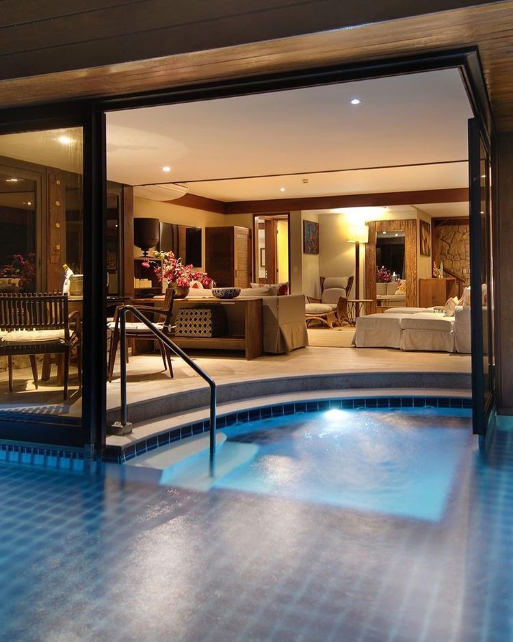 Ar condicionado Secador de cabelo TV a cabo / Smart TV Jacuzzi / Ofurô / Banheira Coberta Frigobar Lareira Máquina de Café Enxoval de Luxo (+ Roupão e Pantufa) Sauna Cozinha Estação de trabalho (mesa e cadeira) Piscina Aquecida ou climatizada Borda Infinita Coberta