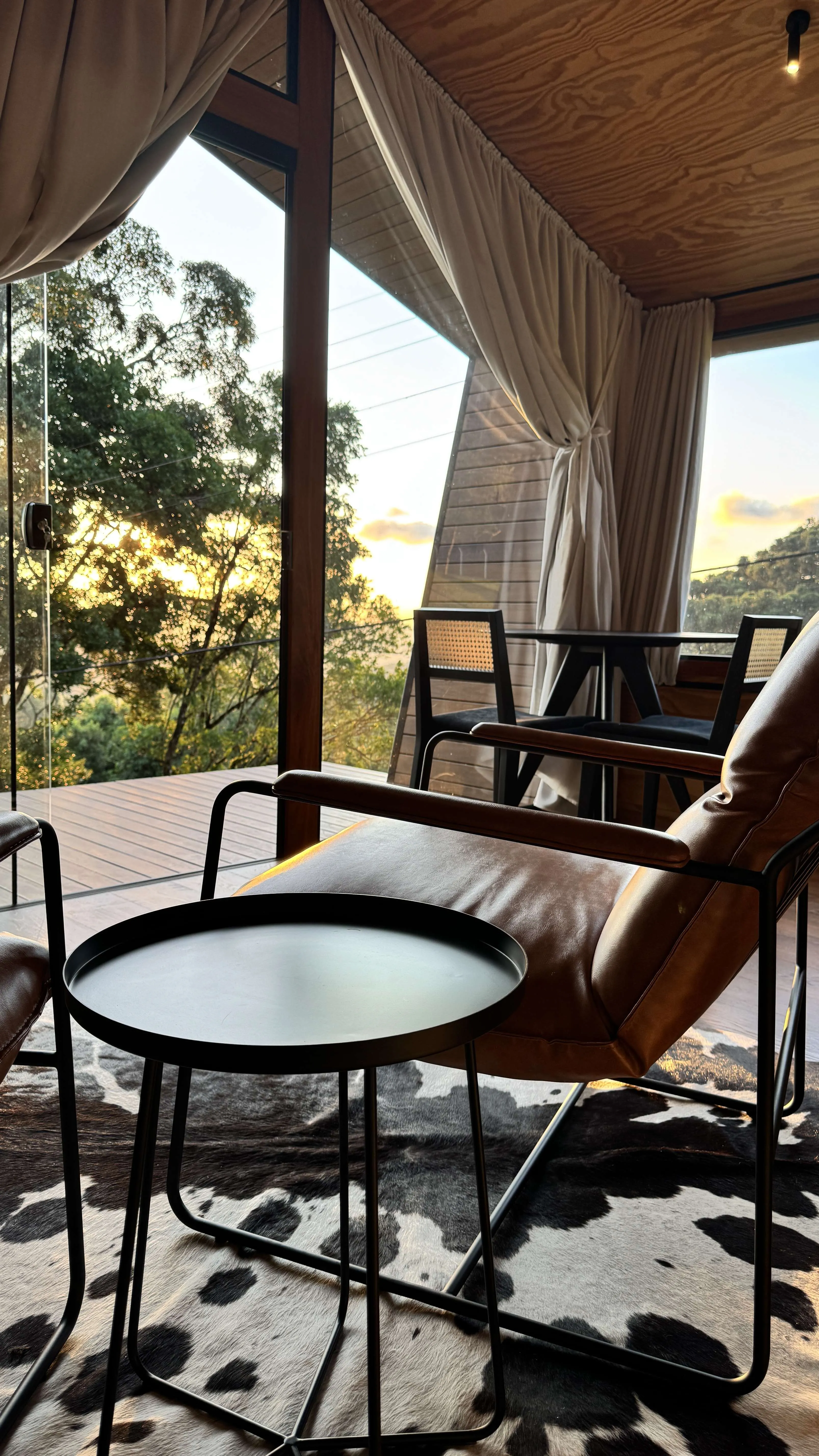 A cabana Nostro Rifugio está situada em Nova Pádua, nos Vales da Serra Gaúcha, em um cenário que convida ao descanso e à contemplação. Com arquitetura inovadora e interior marcado pela presença predominante da madeira, poltronas em couro e lareira acolhedora, o espaço combina charme e conforto em perfeita harmonia. É o refúgio ideal para quem deseja desacelerar e se reconectar em meio à paisagem do vale.