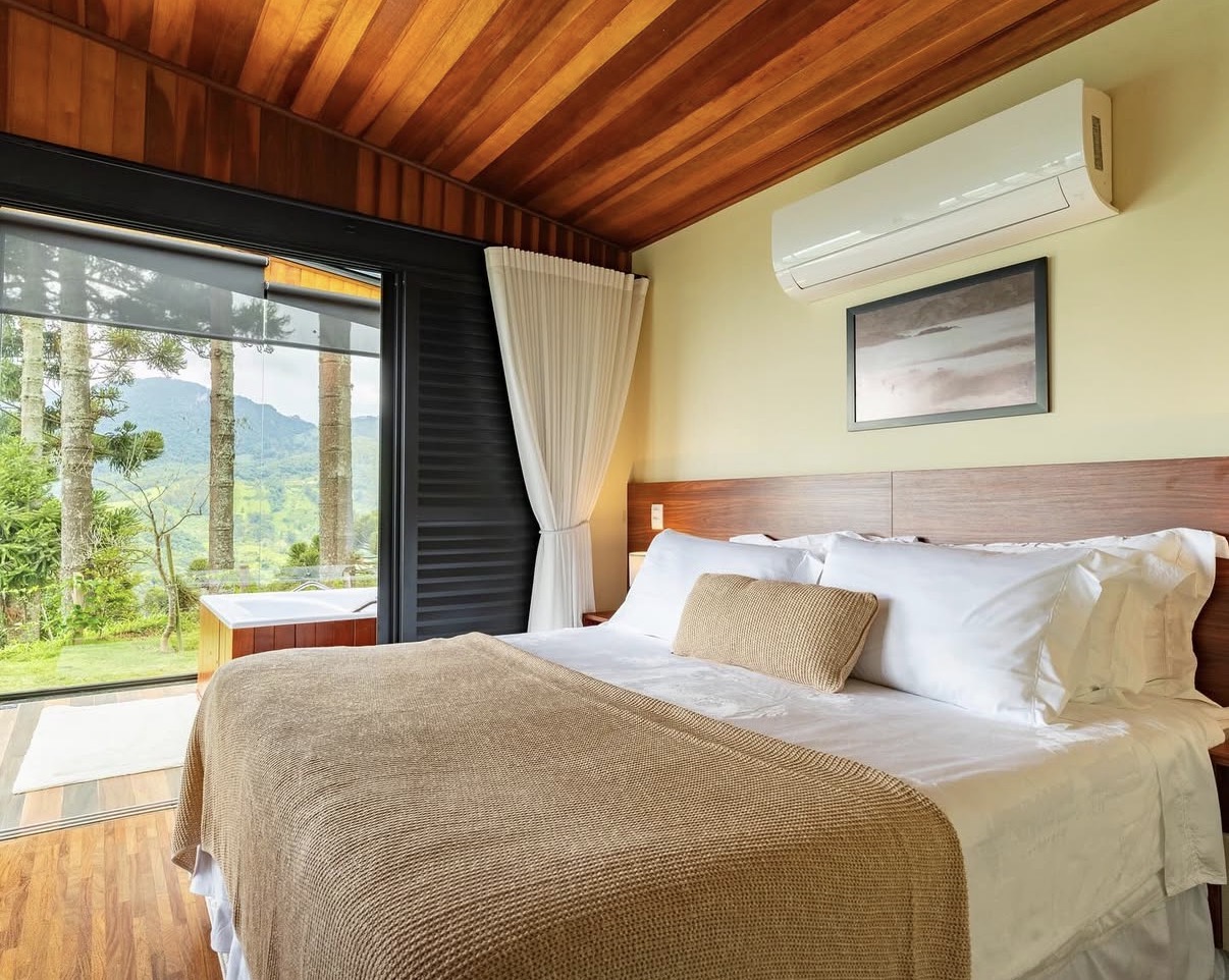 Mais do que um lugar para se hospedar, a cabana se destaca como um refúgio pensado para proporcionar conforto, charme e bem-estar. Cada detalhe foi planejado para entregar uma estadia harmoniosa, onde a serenidade da paisagem se une ao cuidado presente em todo o ambiente.