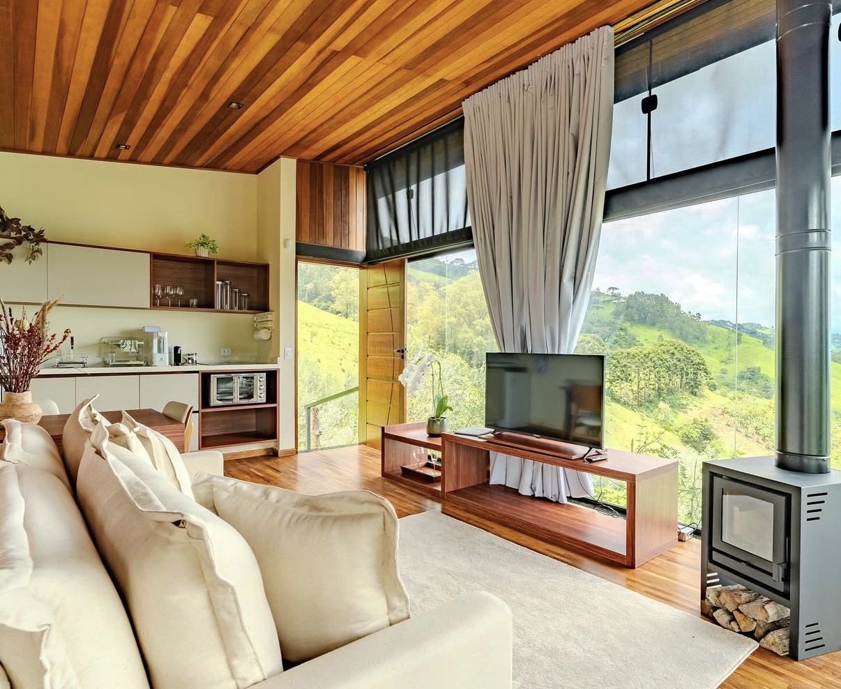 Localizada em meio às montanhas da Mantiqueira, a cabana oferece uma experiência de desconexão em ambiente elegante e integrado à natureza. O espaço conta com jacuzzi voltada para as montanhas, lareira e cozinha completa, criando um clima acolhedor e sofisticado para diferentes ocasiões.