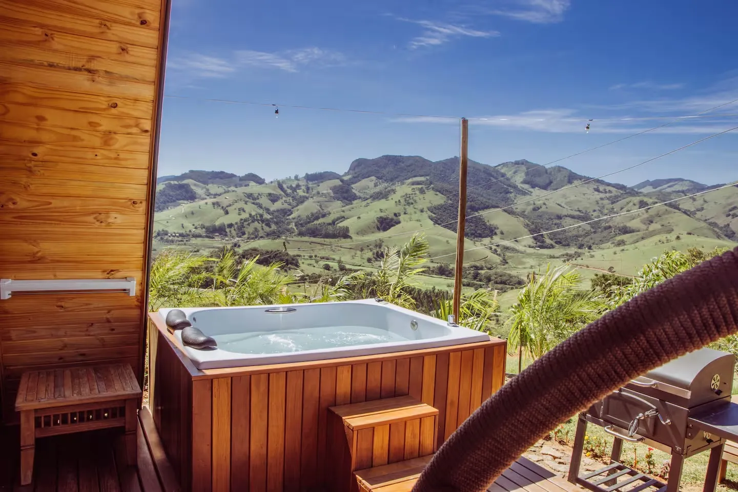Aproveite a jacuzzi externa com vista panorâmica, a piscina com borda infinita e o ambiente acolhedor, ideal para relaxar e apreciar o melhor da Serra da Mantiqueira. Cada detalhe foi planejado para oferecer uma estadia agradável, com conforto, silêncio e o charme simples da vida na serra.