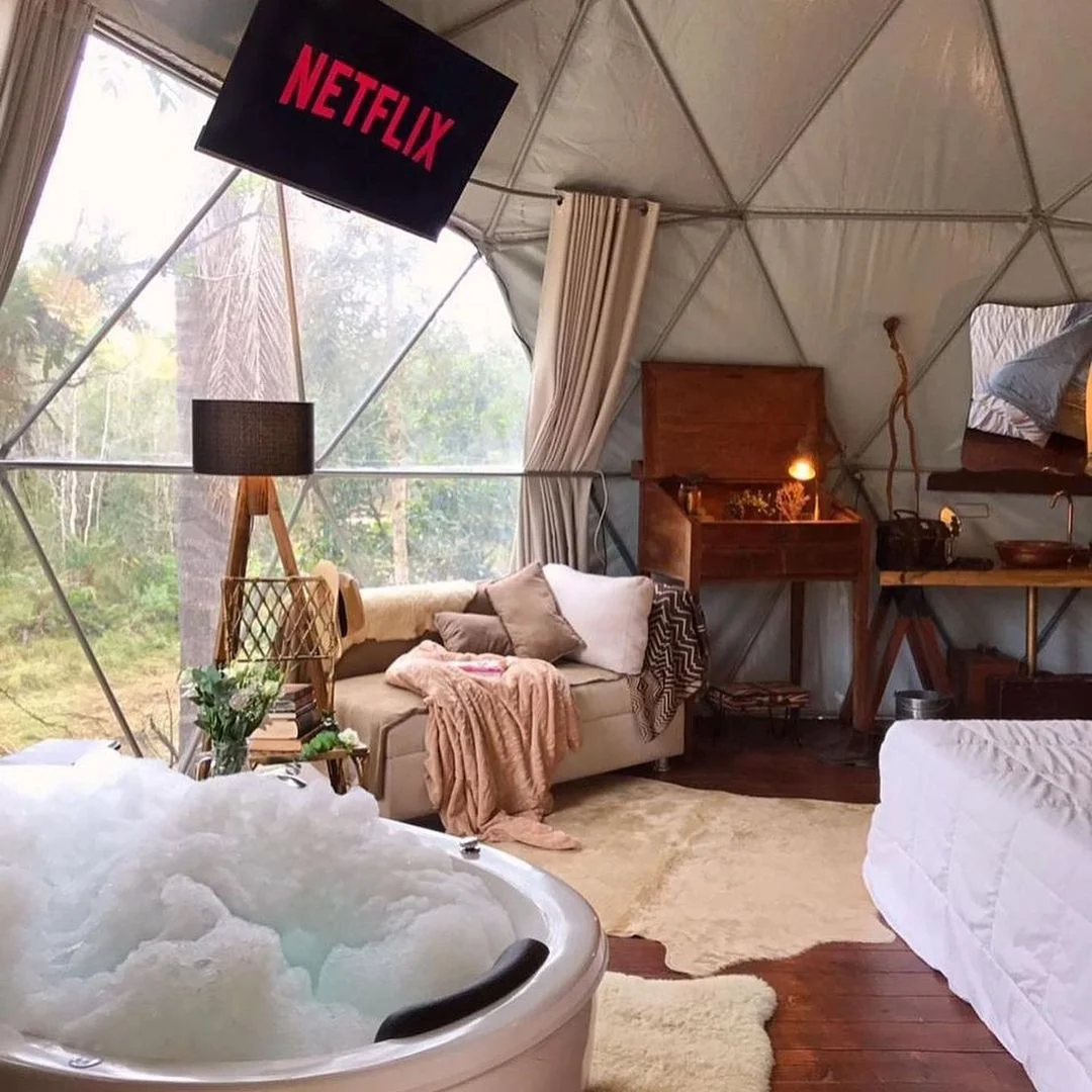 Ar condicionado Secador de cabelo TV a cabo / Smart TV Jacuzzi / Ofurô / Banheira Coberta Frigobar Lareira Máquina de Café Enxoval de Luxo (+ Roupão e Pantufa) Sauna Cozinha Estação de trabalho (mesa e cadeira) Piscina Aquecida ou climatizada Borda Infinita Coberta