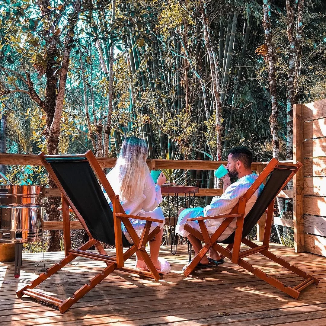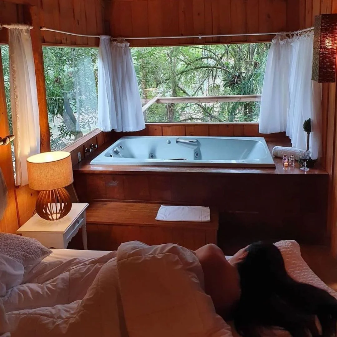 Ao todo, são 7 cabanas, todas aconchegantes, confortáveis e elegantes. É um lugar ideal para atender aos hóspedes que buscam contato com a natureza.