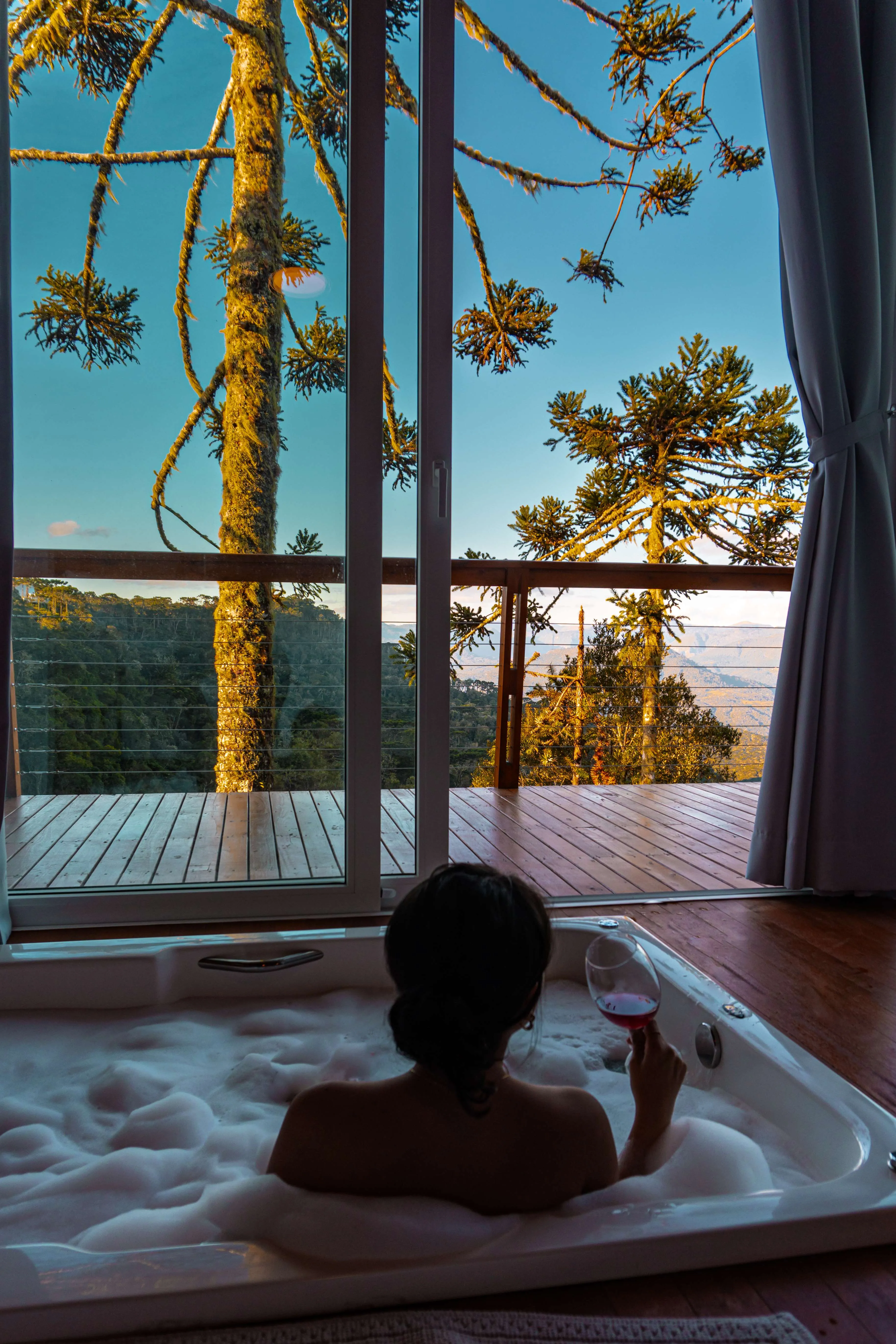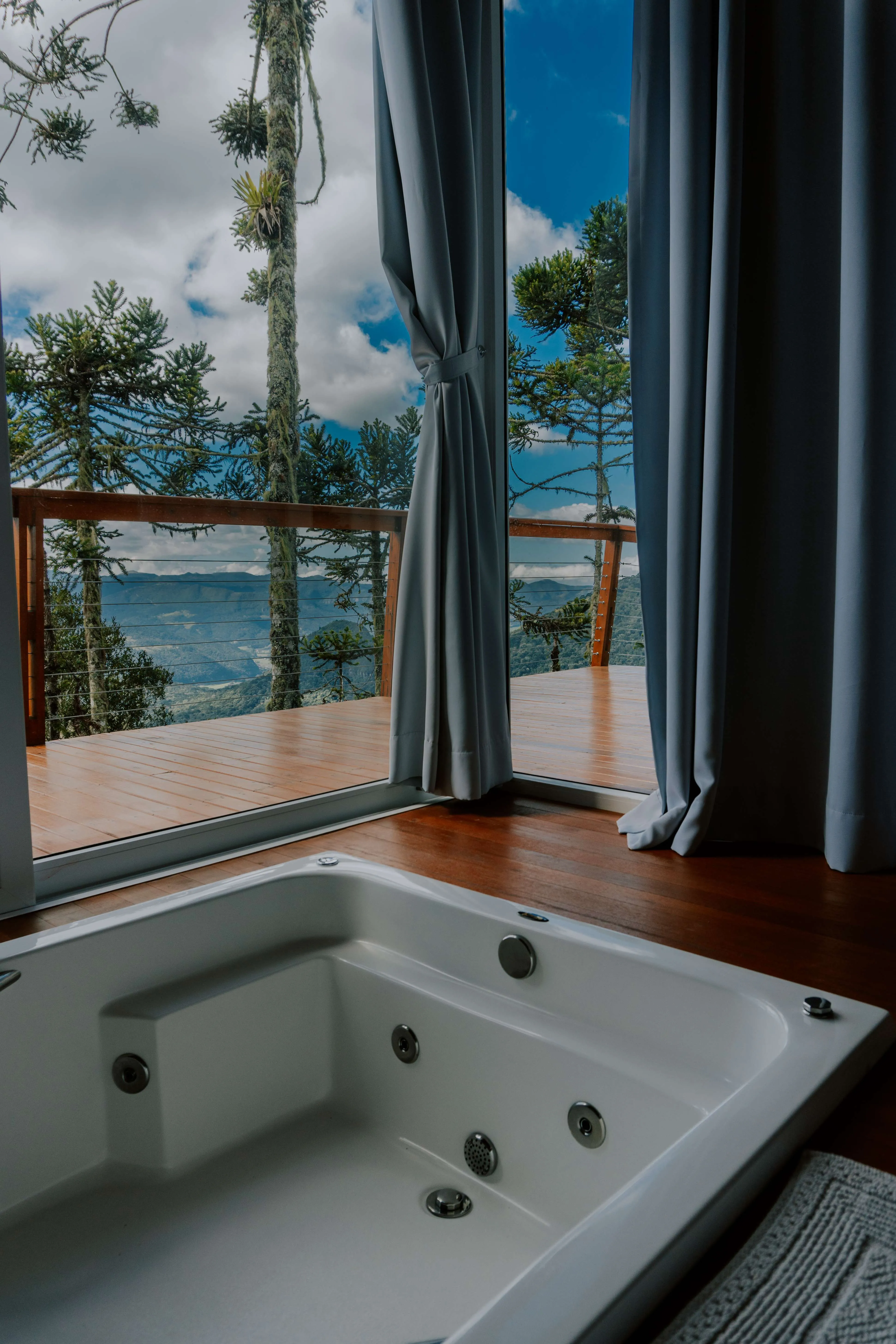 Ar condicionado Secador de cabelo TV a cabo / Smart TV Jacuzzi / Ofurô / Banheira Coberta Frigobar Lareira Máquina de Café Enxoval de Luxo (+ Roupão e Pantufa) Sauna Cozinha Estação de trabalho (mesa e cadeira) Piscina Aquecida ou climatizada Borda Infinita Coberta
