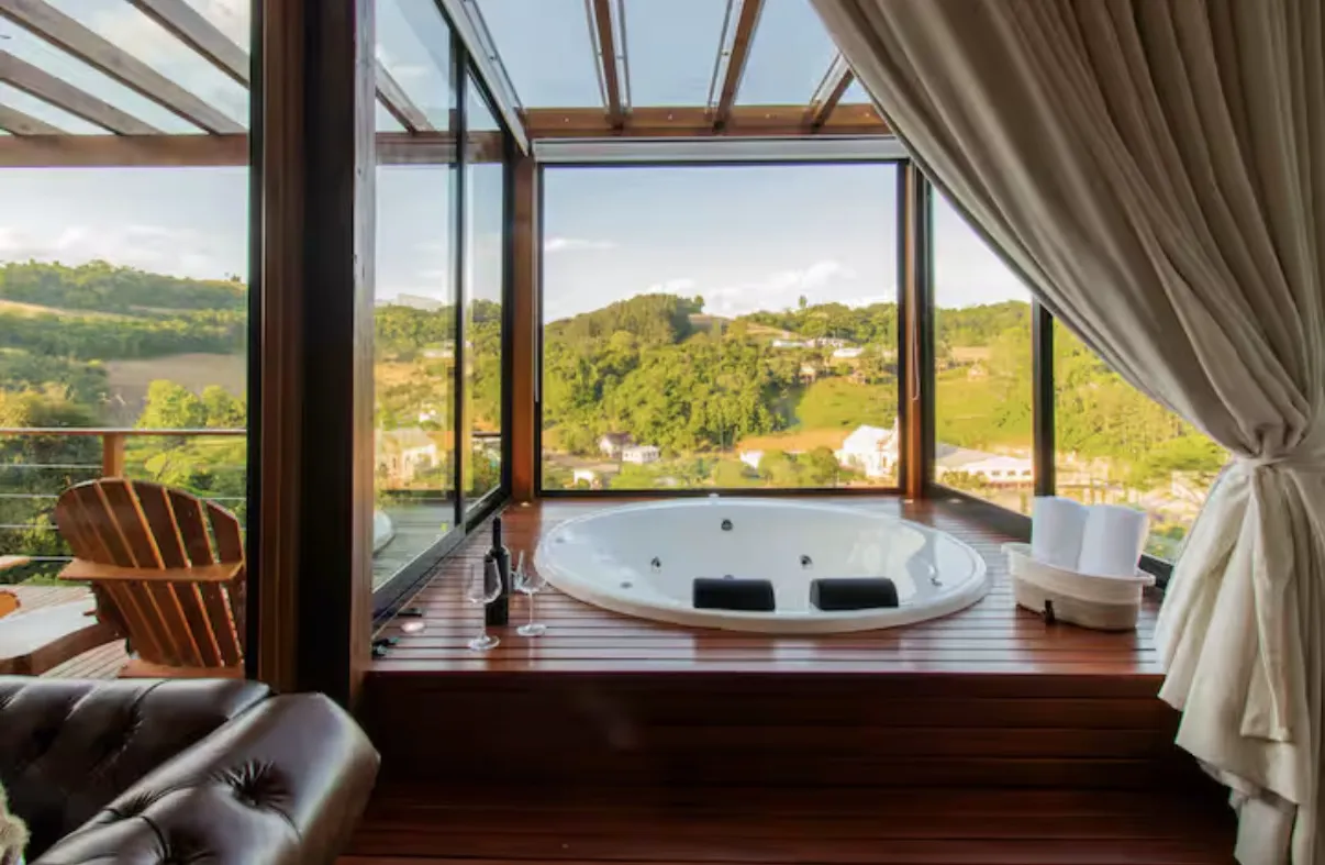 Ar condicionado Secador de cabelo TV a cabo / Smart TV Jacuzzi / Ofurô / Banheira Coberta Frigobar Lareira Máquina de Café Enxoval de Luxo (+ Roupão e Pantufa) Sauna Cozinha Estação de trabalho (mesa e cadeira) Piscina Aquecida ou climatizada Borda Infinita Coberta