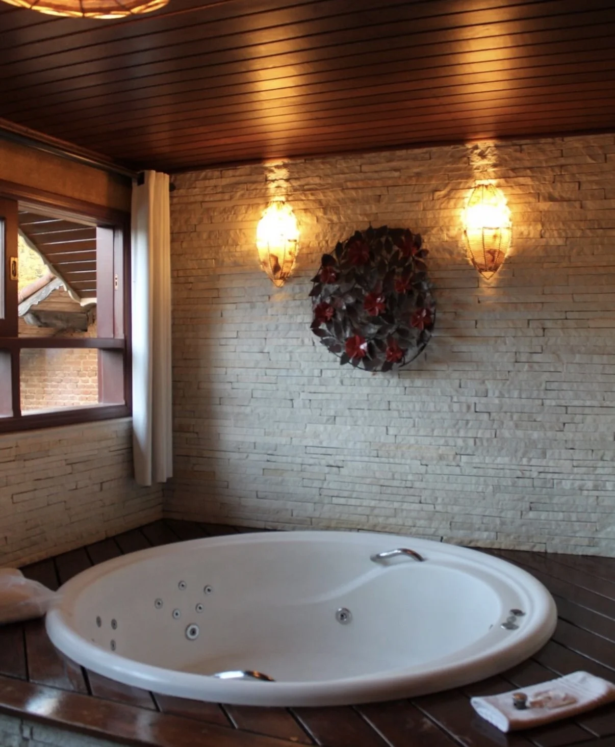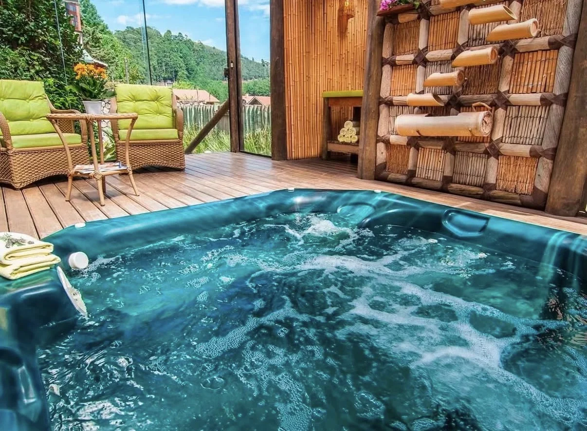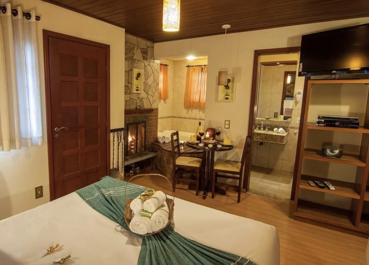 Ar condicionado Secador de cabelo TV a cabo / Smart TV Jacuzzi / Ofurô / Banheira Coberta Frigobar Lareira Máquina de Café Enxoval de Luxo (+ Roupão e Pantufa) Sauna Cozinha Estação de trabalho (mesa e cadeira) Piscina Aquecida ou climatizada Borda Infinita Coberta