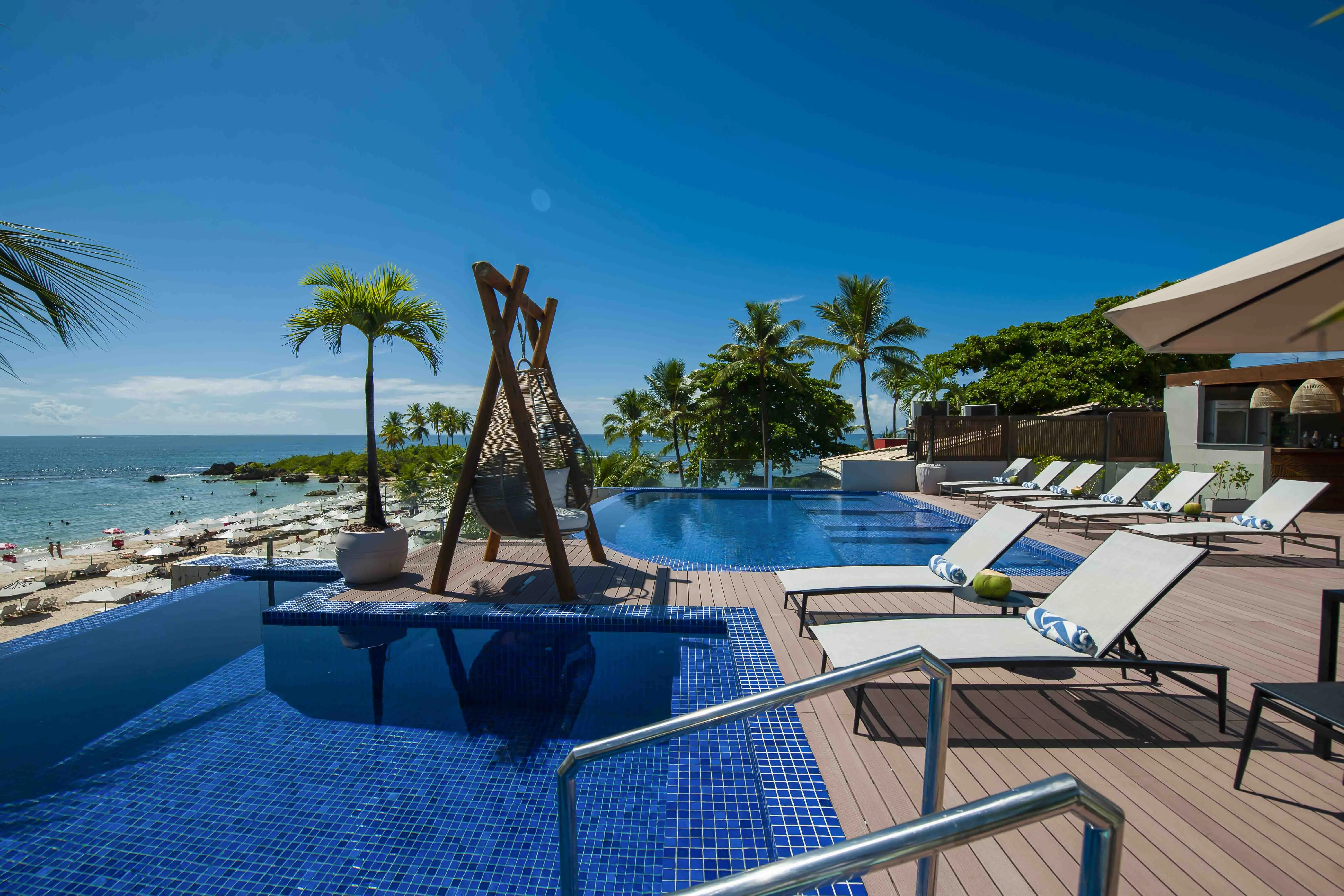 A Bahia Tambor está situada na charmosa Segunda Praia de Morro de São Paulo, um dos destinos mais procurados da Bahia. Com vista privilegiada para o mar, a área de lazer conta com duas piscinas de borda infinita, ideais para relaxar e contemplar a paisagem.
