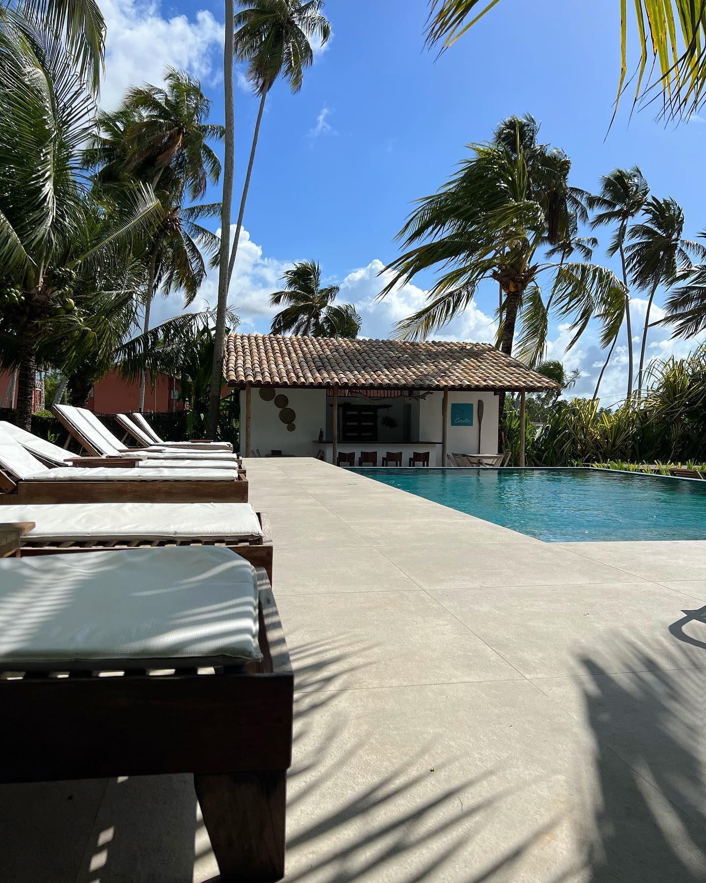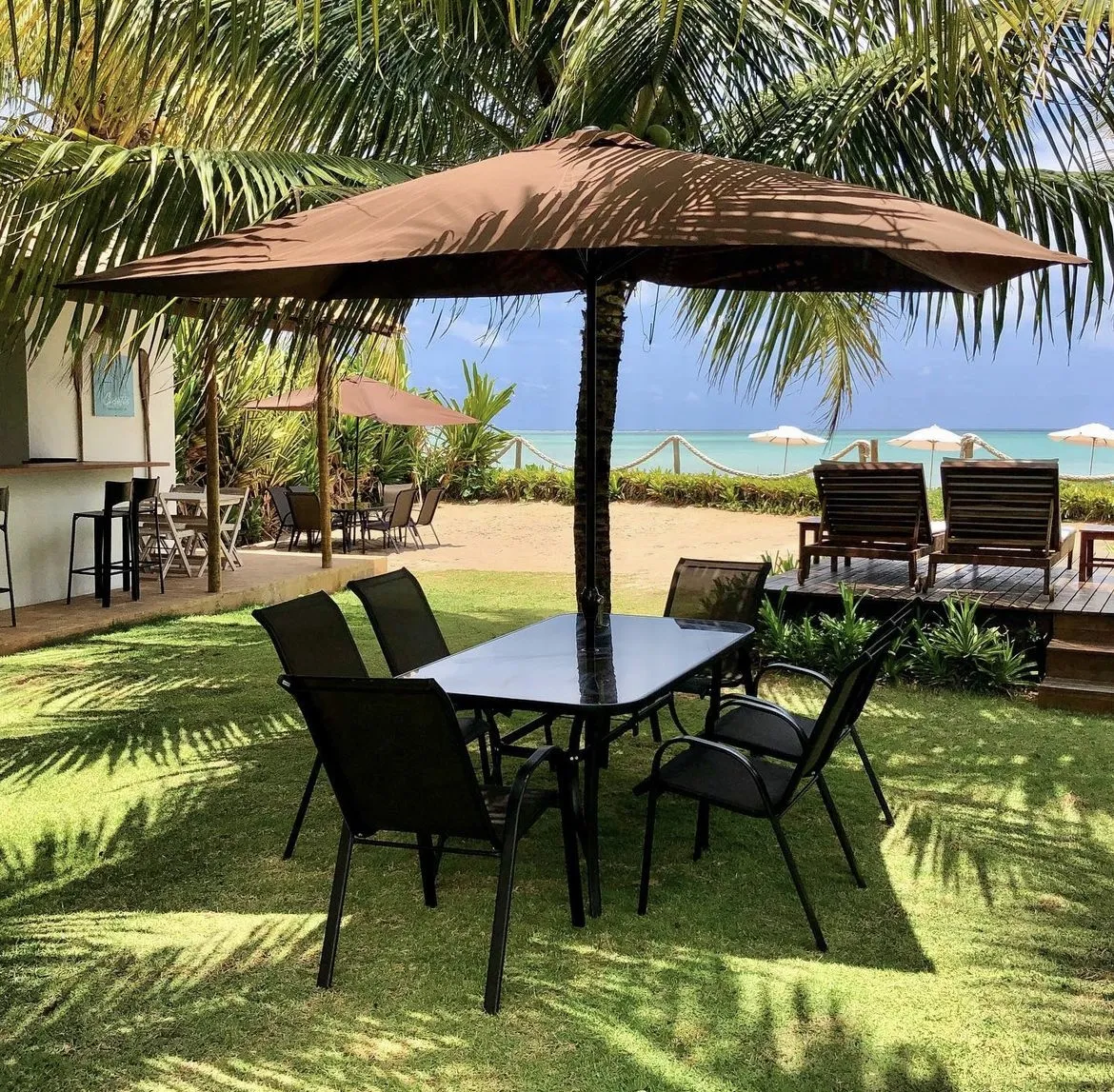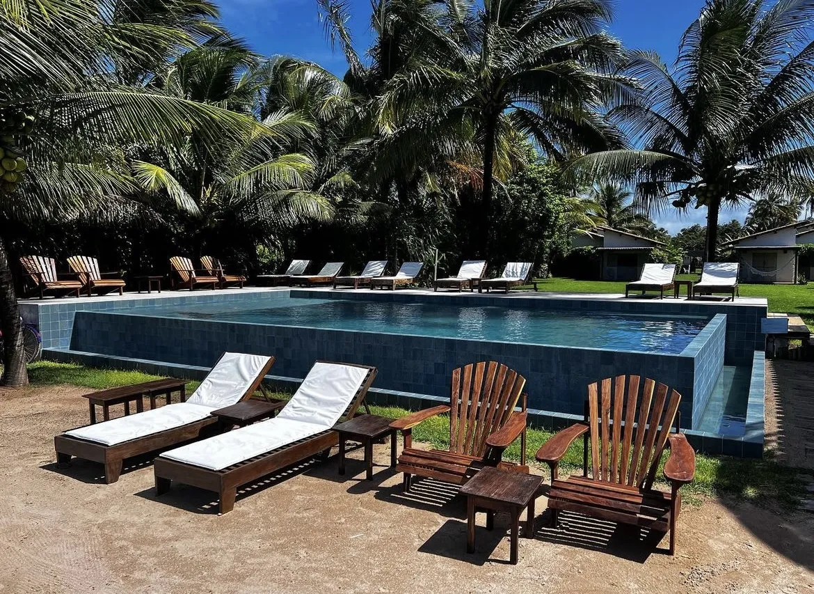 O sítio de 15.000 m² à beira-mar, carinhosamente chamado de quintal, inicialmente teve duas charmosas casas construídas, batizadas de Casota da LOLA e Casota do JOCA, cada uma com três quartos com banheiro privativo. Com o passar do tempo, foram feitas reformas e todos os quartos possuem entradas independentes, permitindo assim receber casais e famílias compartilhando do mesmo quintal. Atualmente, o local conta com 8 quartos com varanda, sendo 4 com vista para o jardim e 4 com vista para o mar, todos com decoração rústica e materiais locais, proporcionando uma experiência única de hospedagem 'pé na areia'.