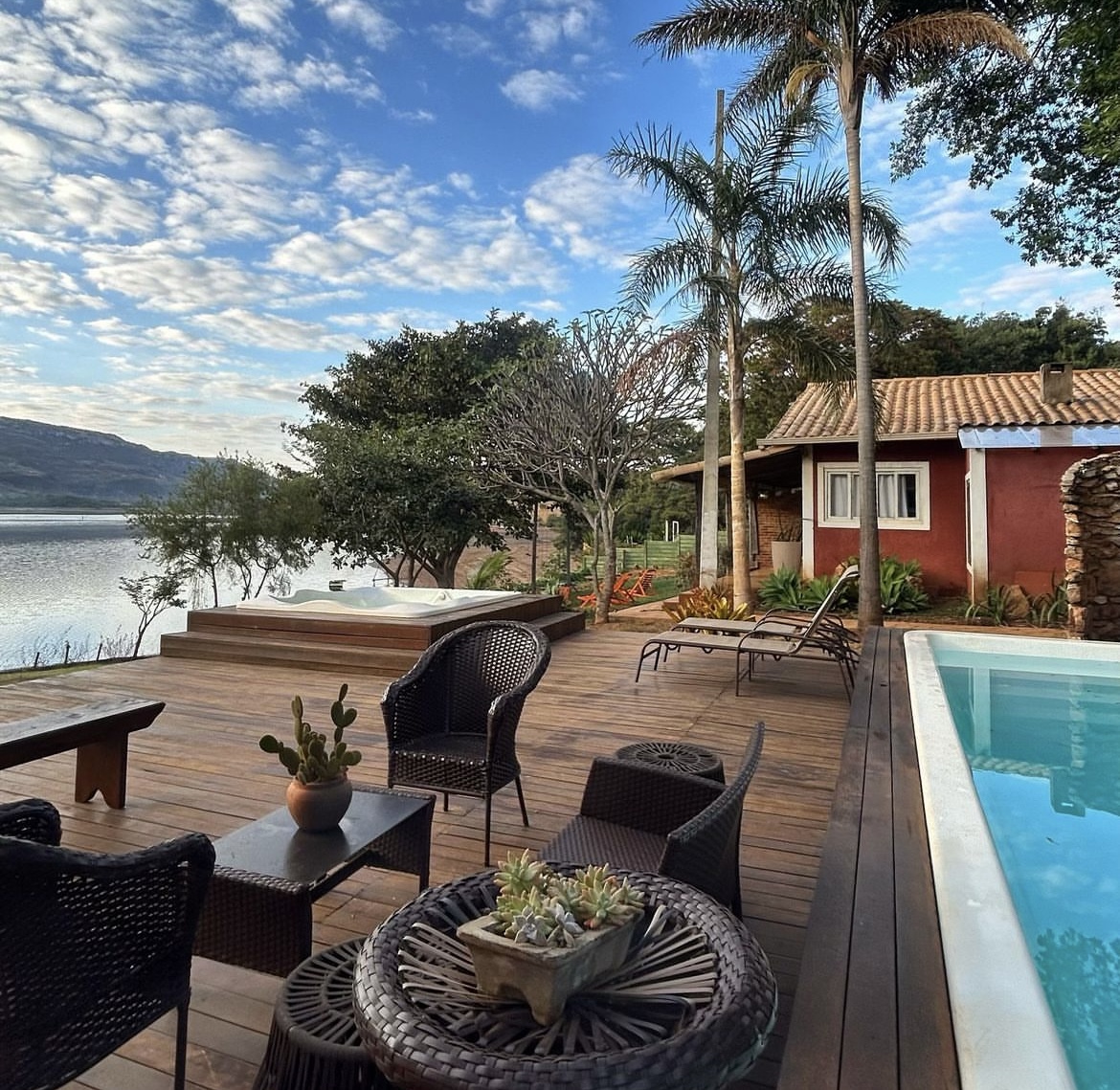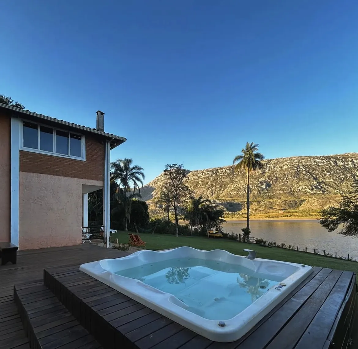 A pousada oferece uma ampla área externa verde, estacionamento para hóspedes, recepção atenciosa, e um salão de café da manhã acolhedor. O quintal conta com uma corda de slackline, piscina e jacuzzi externas. Além disso, o acesso direto à lagoa proporciona a oportunidade de explorar a natureza com os caiaques, coletes, remos e stand-up.