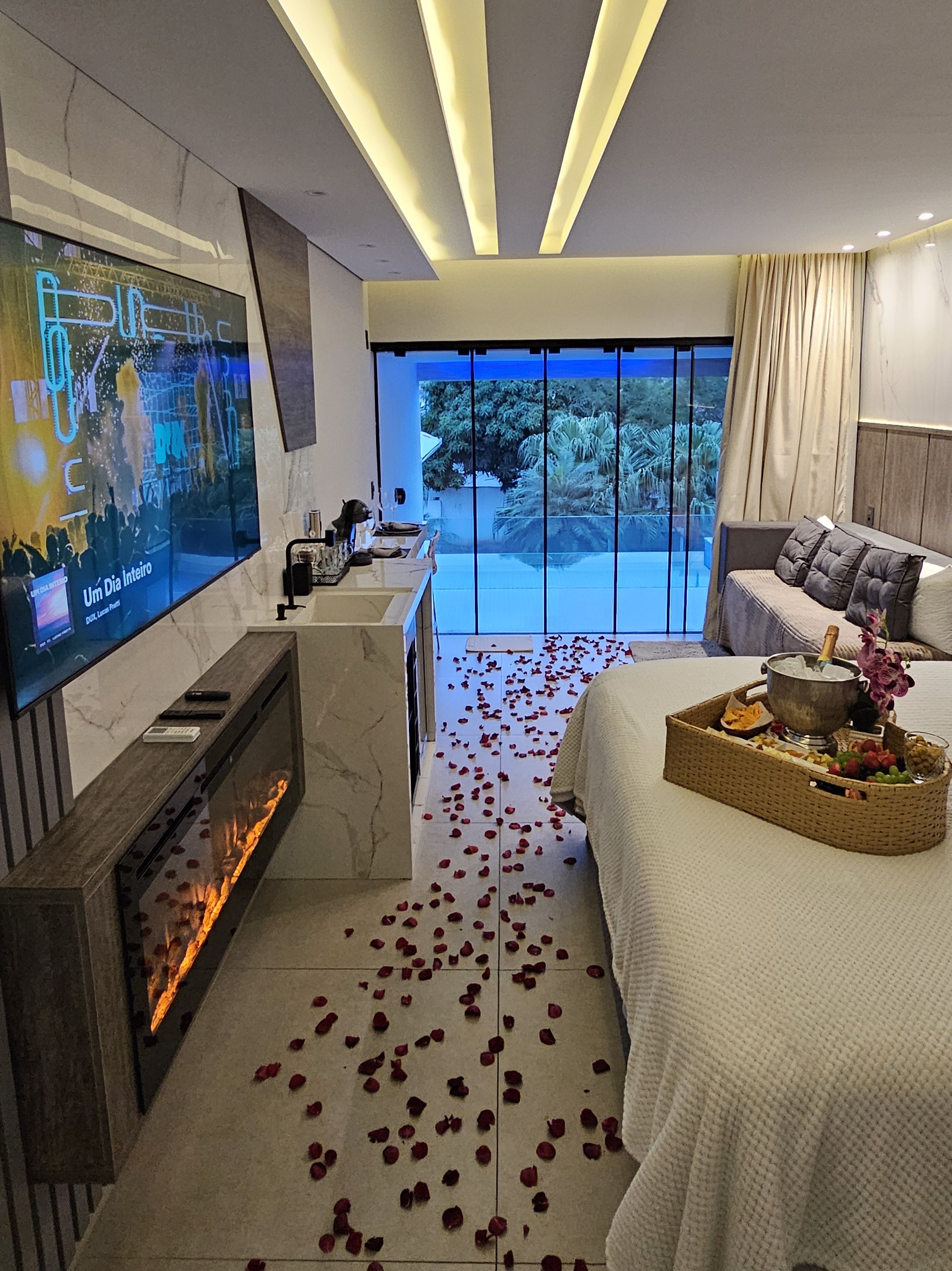 Ar condicionado Secador de cabelo TV a cabo / Smart TV Jacuzzi / Ofurô / Banheira Coberta Frigobar Lareira Máquina de Café Enxoval de Luxo (+ Roupão e Pantufa) Sauna Cozinha Estação de trabalho (mesa e cadeira) Piscina Aquecida ou climatizada Borda Infinita Coberta