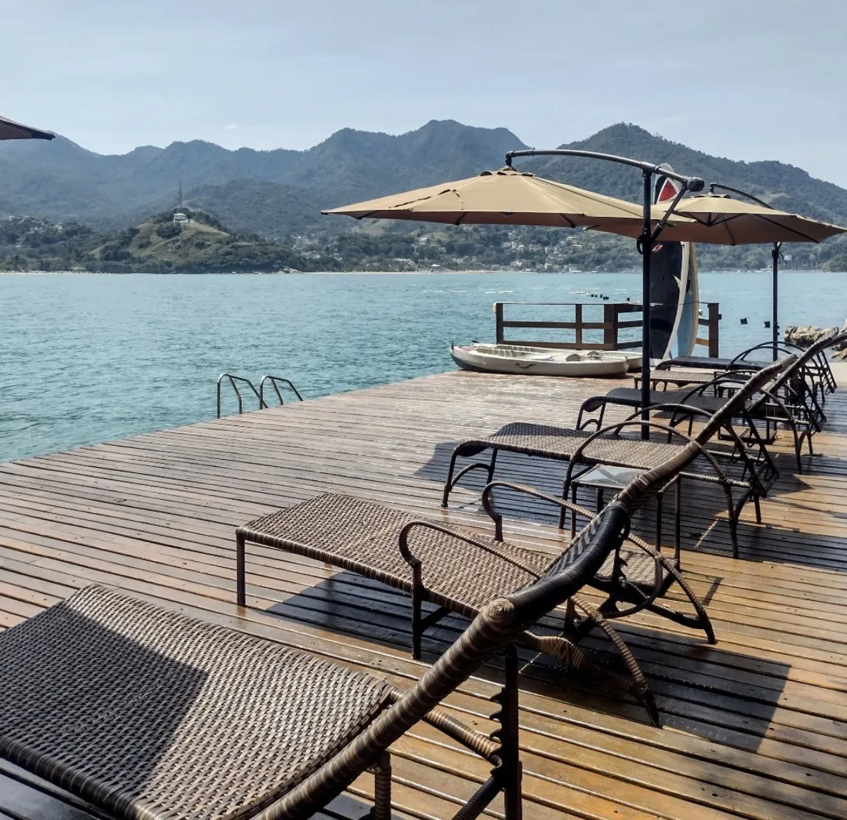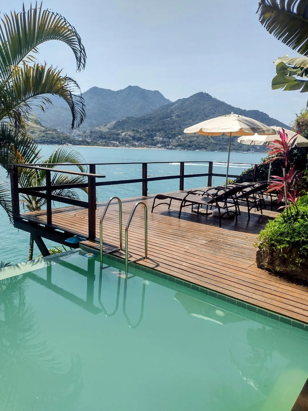 Os quartos foram projetados para garantir bem-estar e tranquilidade, com varanda térrea e vista para o mar, banheiro privativo e ar-condicionado. O local é ideal para quem busca descanso com charme, podendo ainda desfrutar de atividades como mergulho e passeios de canoa, e translados diarios a Ilha Grande Vila do Abrao e Lopes Mendes tornando cada momento da estadia inesquecível.