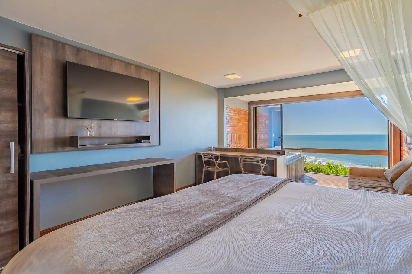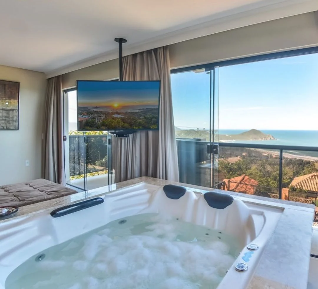 Ar condicionado Secador de cabelo TV a cabo / Smart TV Jacuzzi / Ofurô / Banheira Coberta Frigobar Lareira Máquina de Café Enxoval de Luxo (+ Roupão e Pantufa) Sauna Cozinha Estação de trabalho (mesa e cadeira) Piscina Aquecida ou climatizada Borda Infinita Coberta