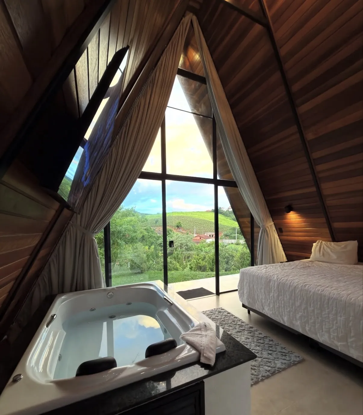 Ar condicionado Secador de cabelo TV a cabo / Smart TV Jacuzzi / Ofurô / Banheira Coberta Frigobar Lareira Máquina de Café Enxoval de Luxo (+ Roupão e Pantufa) Sauna Cozinha Estação de trabalho (mesa e cadeira) Piscina Aquecida ou climatizada Borda Infinita Coberta