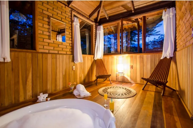 Ar condicionado Secador de cabelo TV a cabo / Smart TV Jacuzzi / Ofurô / Banheira Coberta Frigobar Lareira Máquina de Café Enxoval de Luxo (+ Roupão e Pantufa) Sauna Cozinha Estação de trabalho (mesa e cadeira) Piscina Aquecida ou climatizada Borda Infinita Coberta