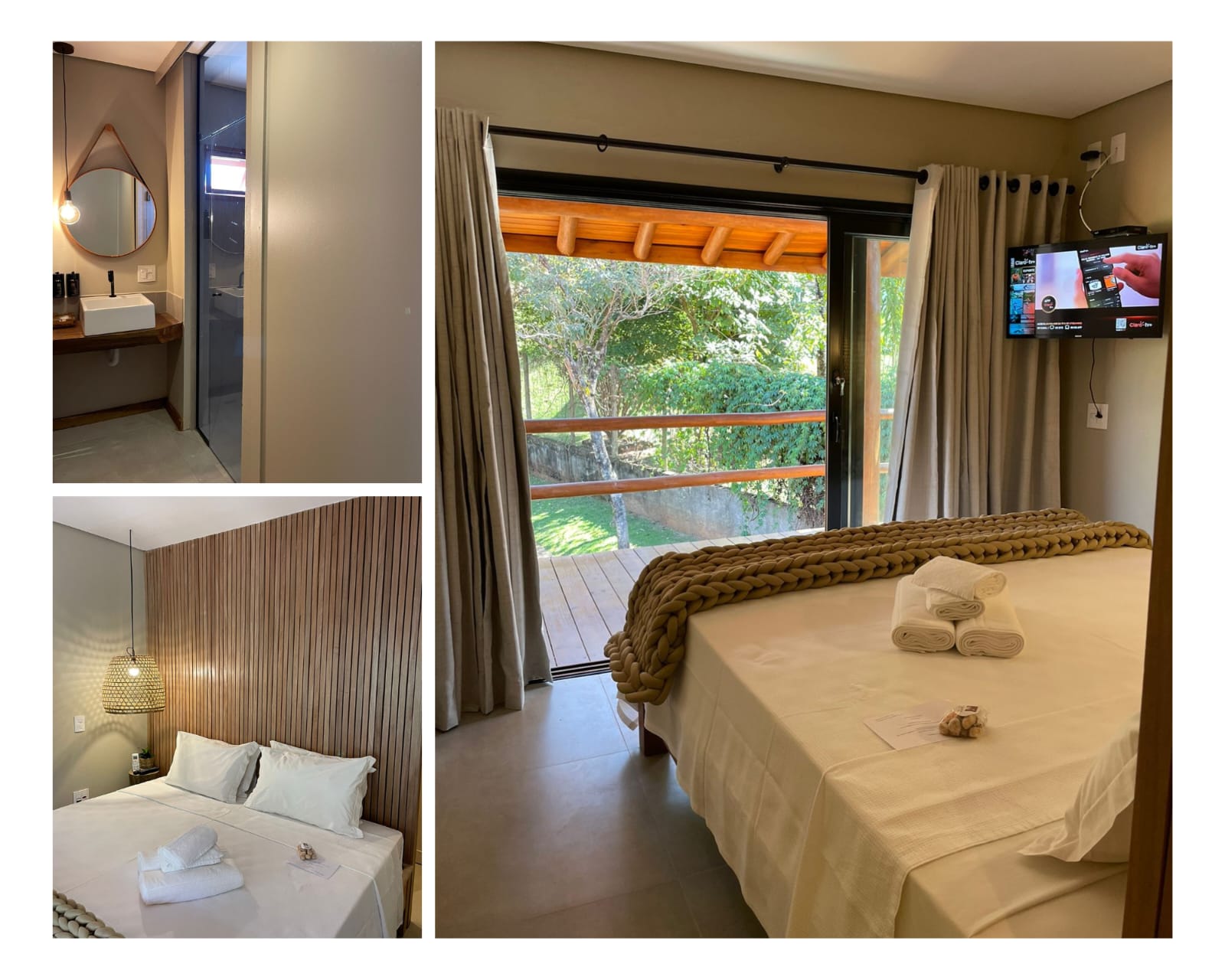 Ar condicionado Secador de cabelo TV a cabo / Smart TV Jacuzzi / Ofurô / Banheira Coberta Frigobar Lareira Máquina de Café Enxoval de Luxo (+ Roupão e Pantufa) Sauna Cozinha Estação de trabalho (mesa e cadeira) Piscina Aquecida ou climatizada Borda Infinita Coberta