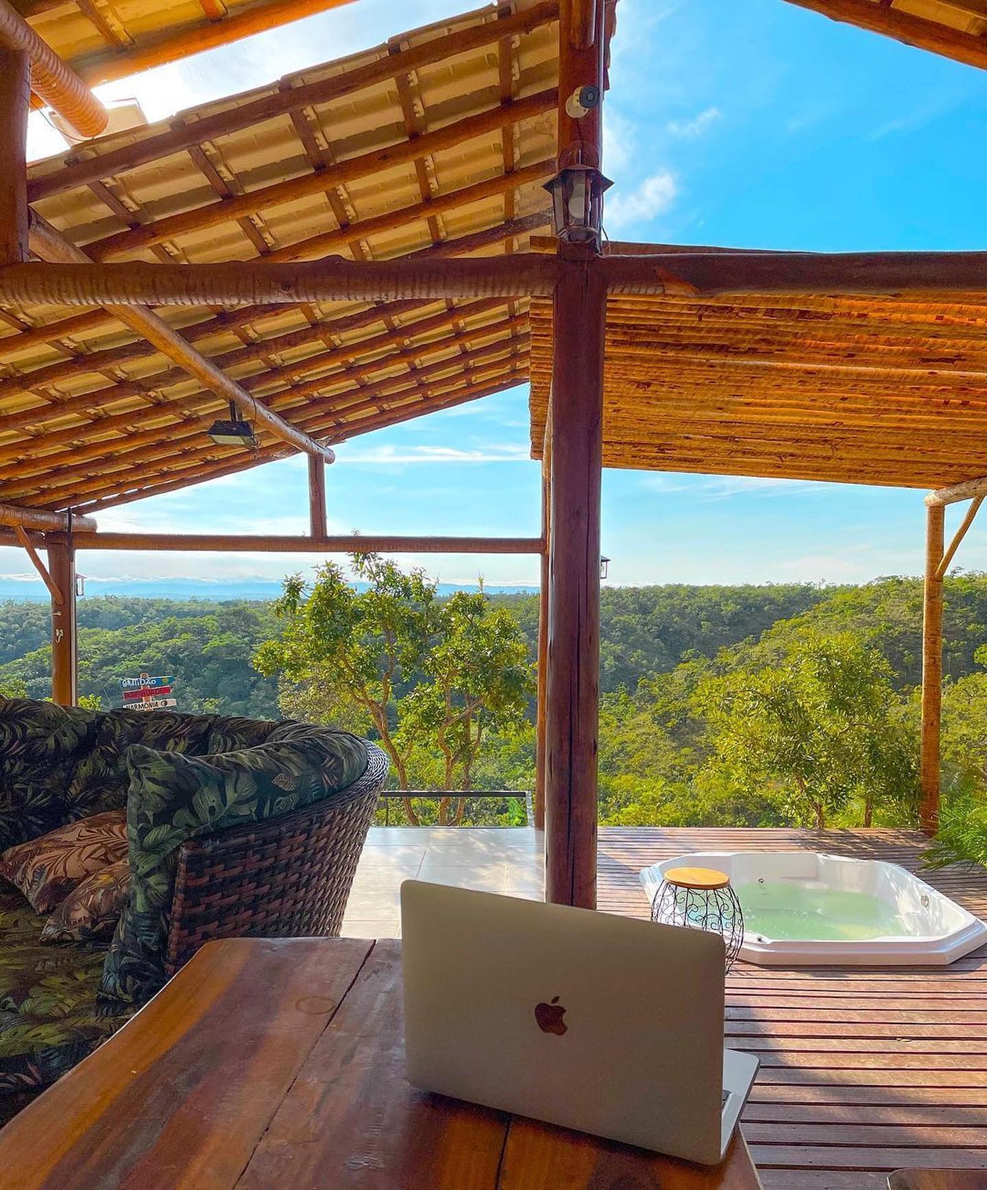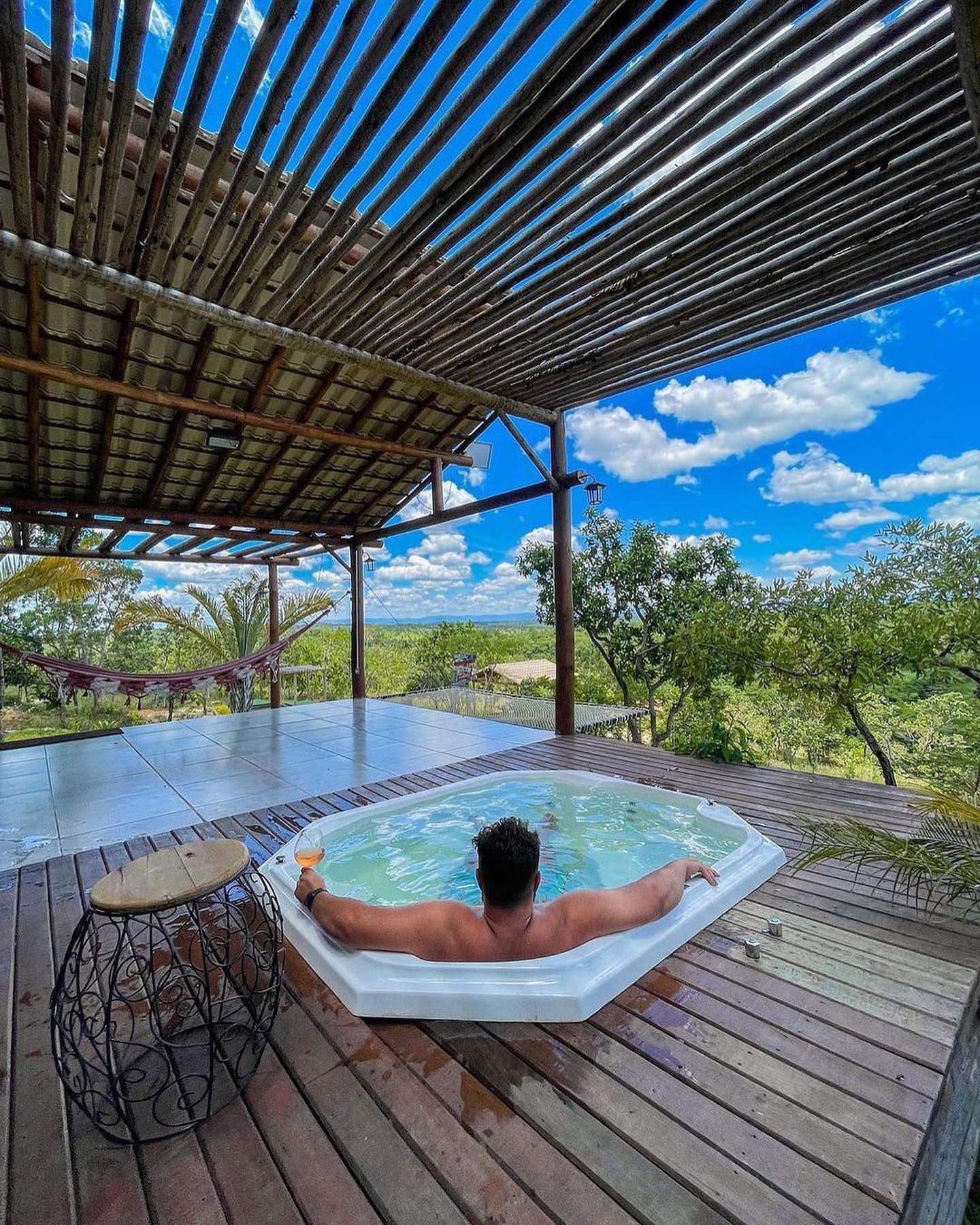 A Pousada é 100% sustentável, utiliza energia solar e eólica, os chalés contam com TV por assinatura, Netflix e Sky, área para churrasco, lareira externa e cozinha externa. E pode-se pagar com Criptomoedas. Sensacional!