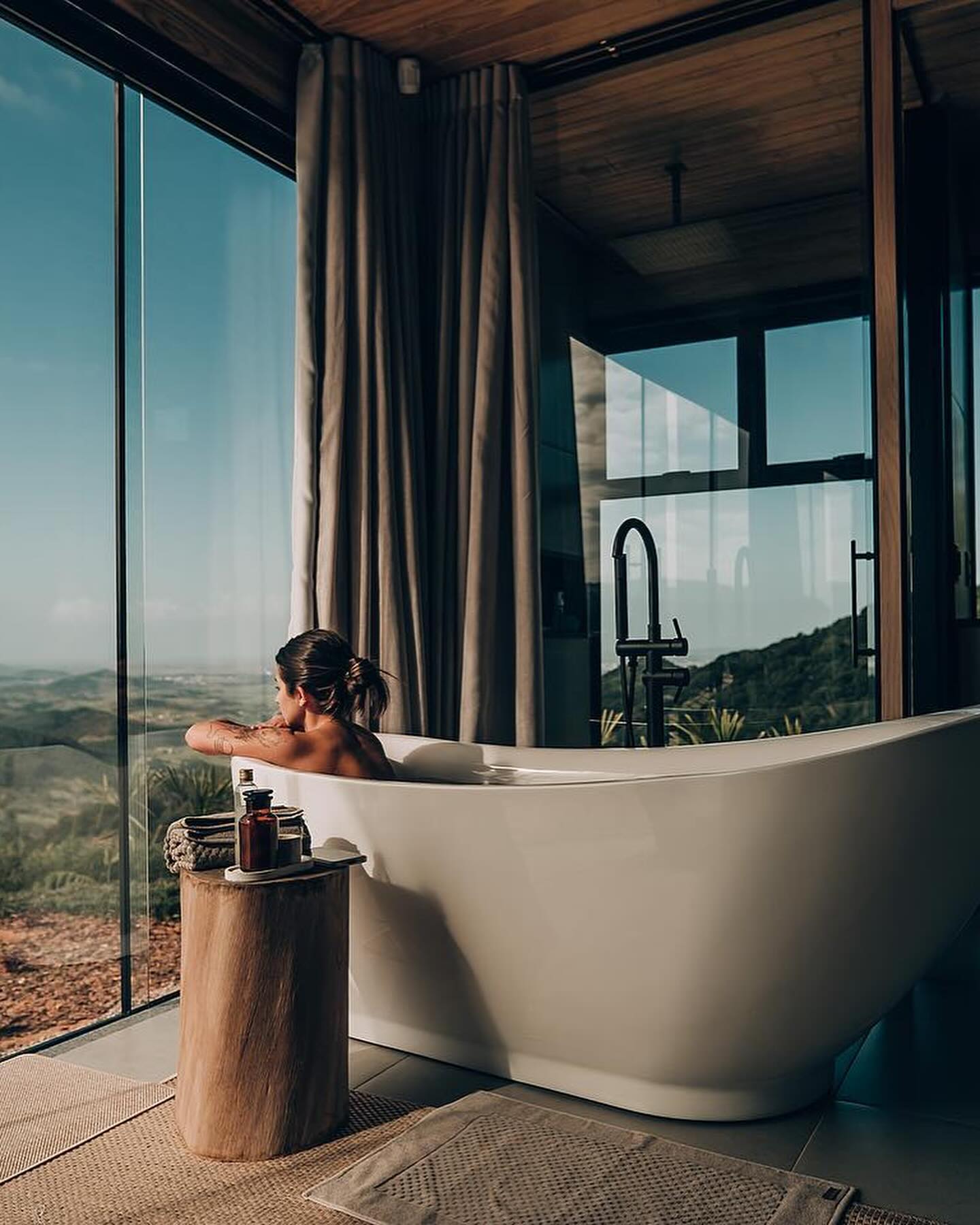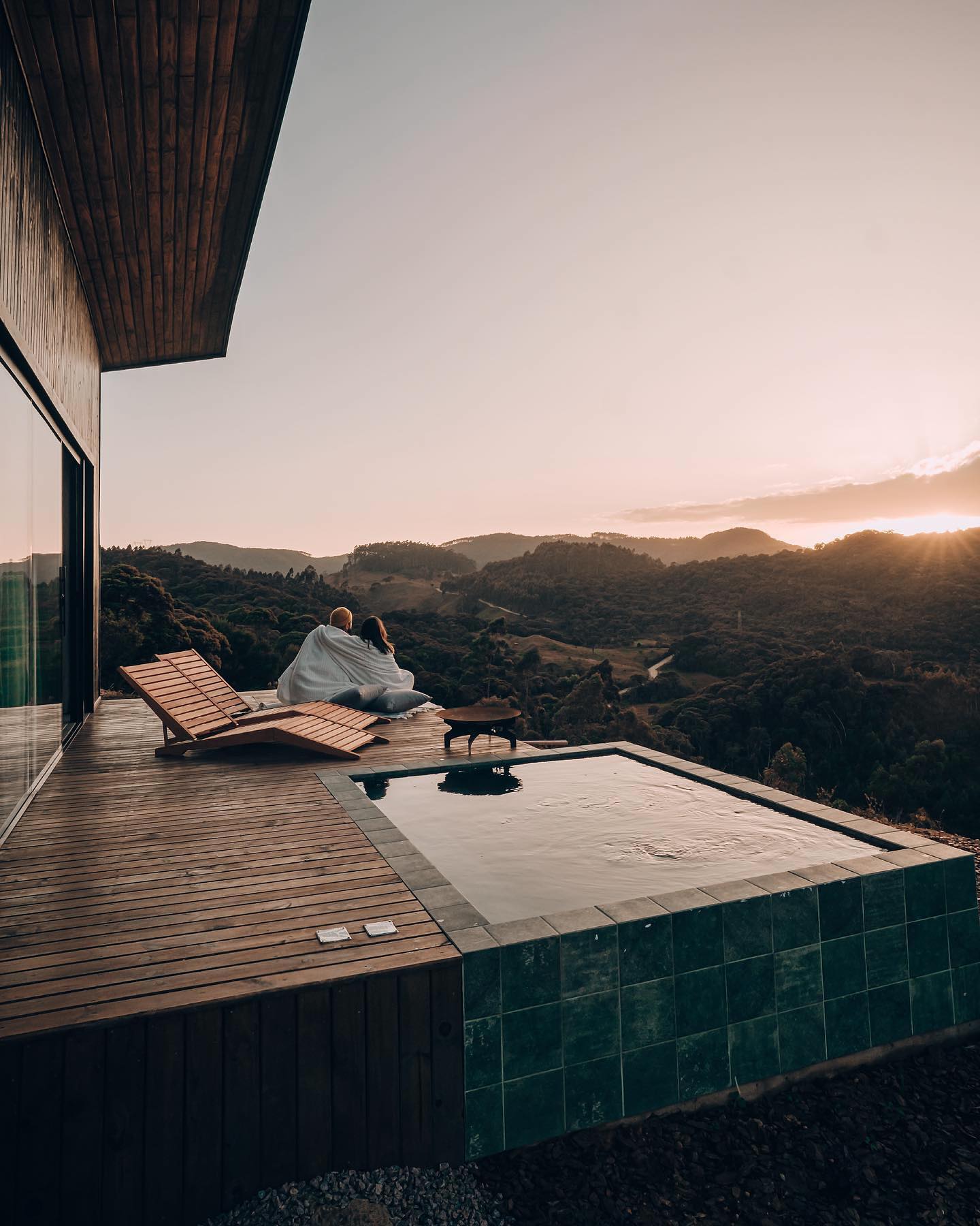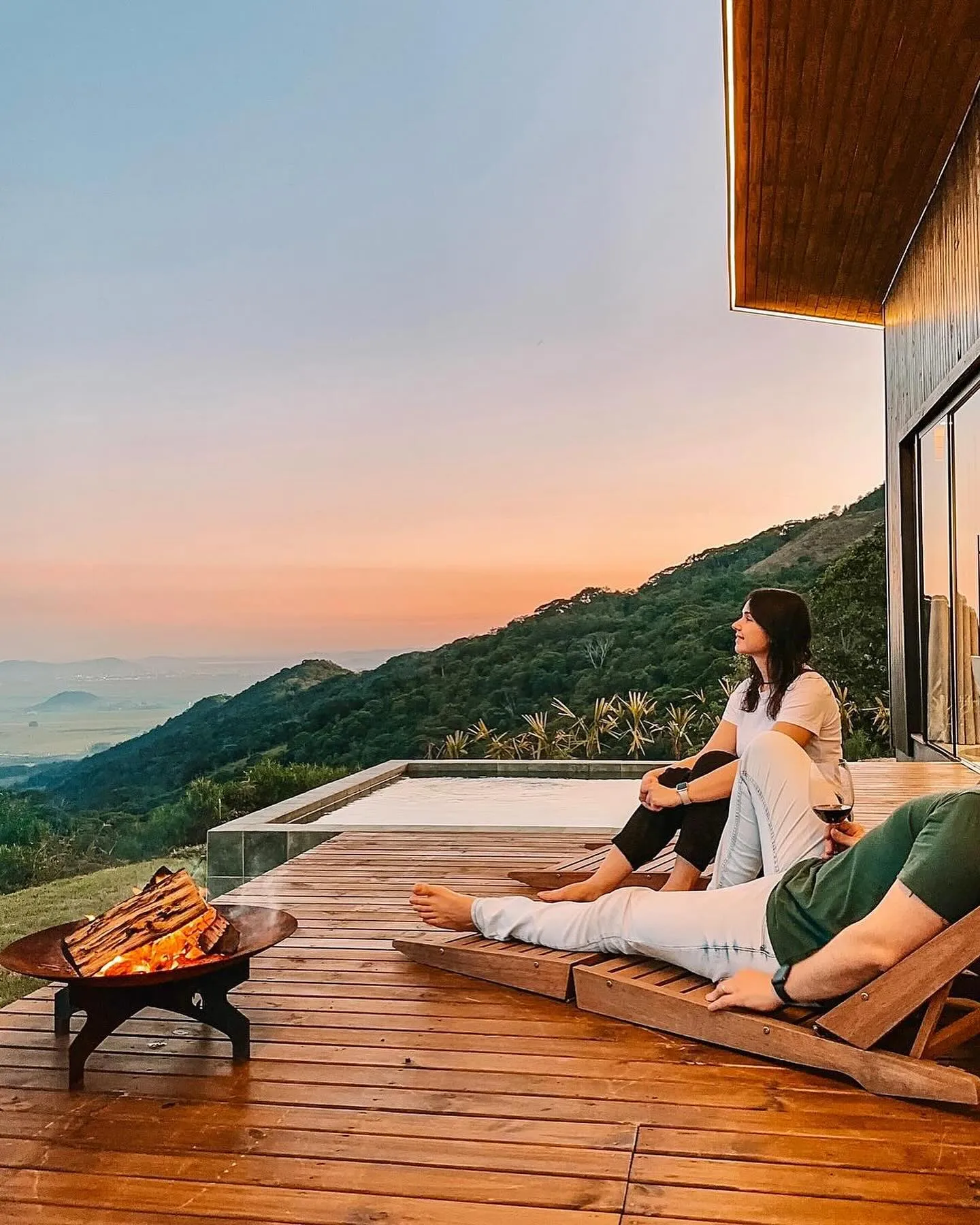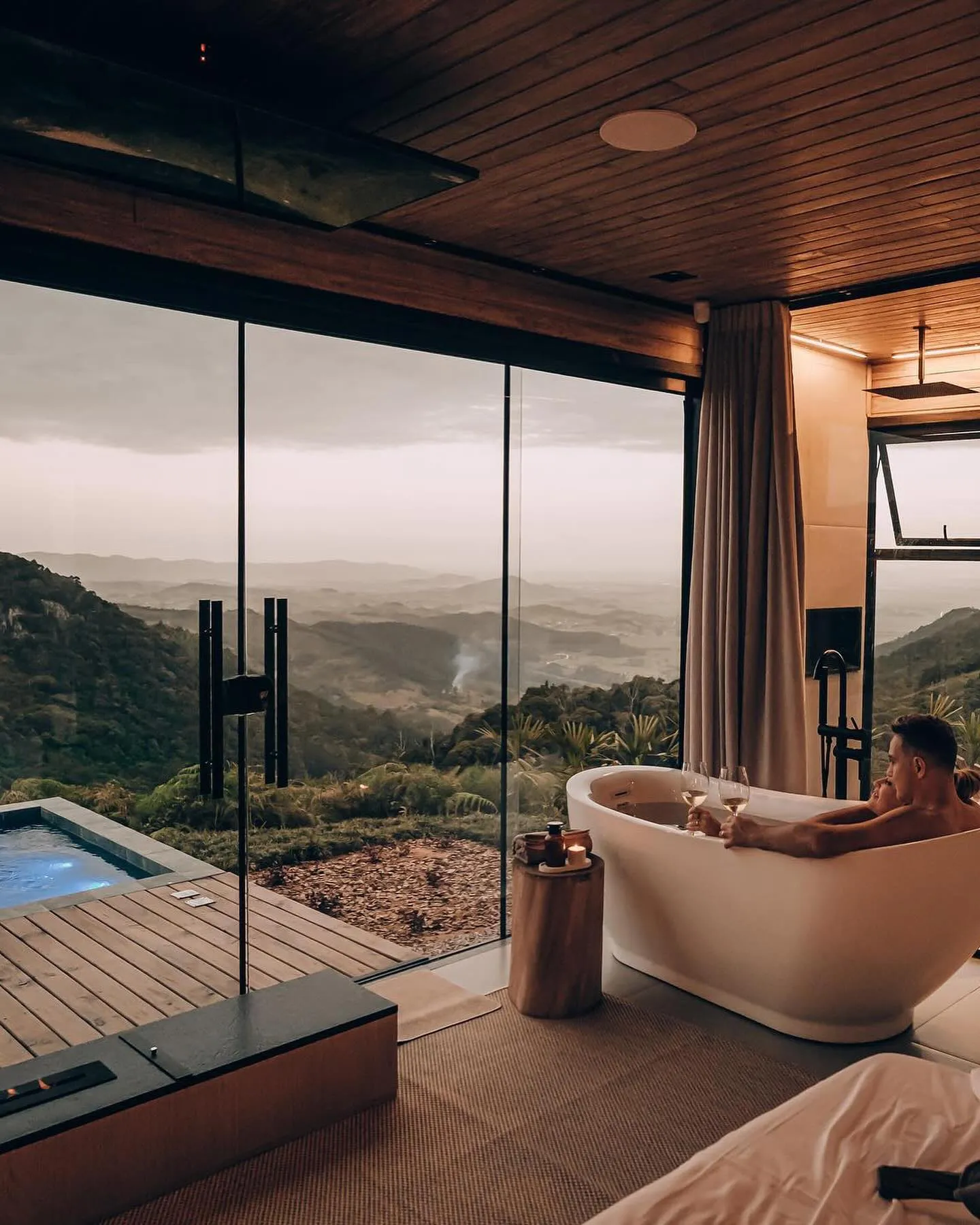 A área externa oferece piscina climatizada, deck com espreguiçadeiras, fire pit e espaço para apreciar o pôr do sol com vinho ao ar livre. No banho, escolha entre a banheira de imersão ou a ducha com efeito chuva, ambas com vista marcante e amenities de alto padrão. Um refúgio onde o tempo desacelera e cada detalhe foi pensado para criar memórias autênticas e momentos de reconexão em meio à paisagem inspiradora.
