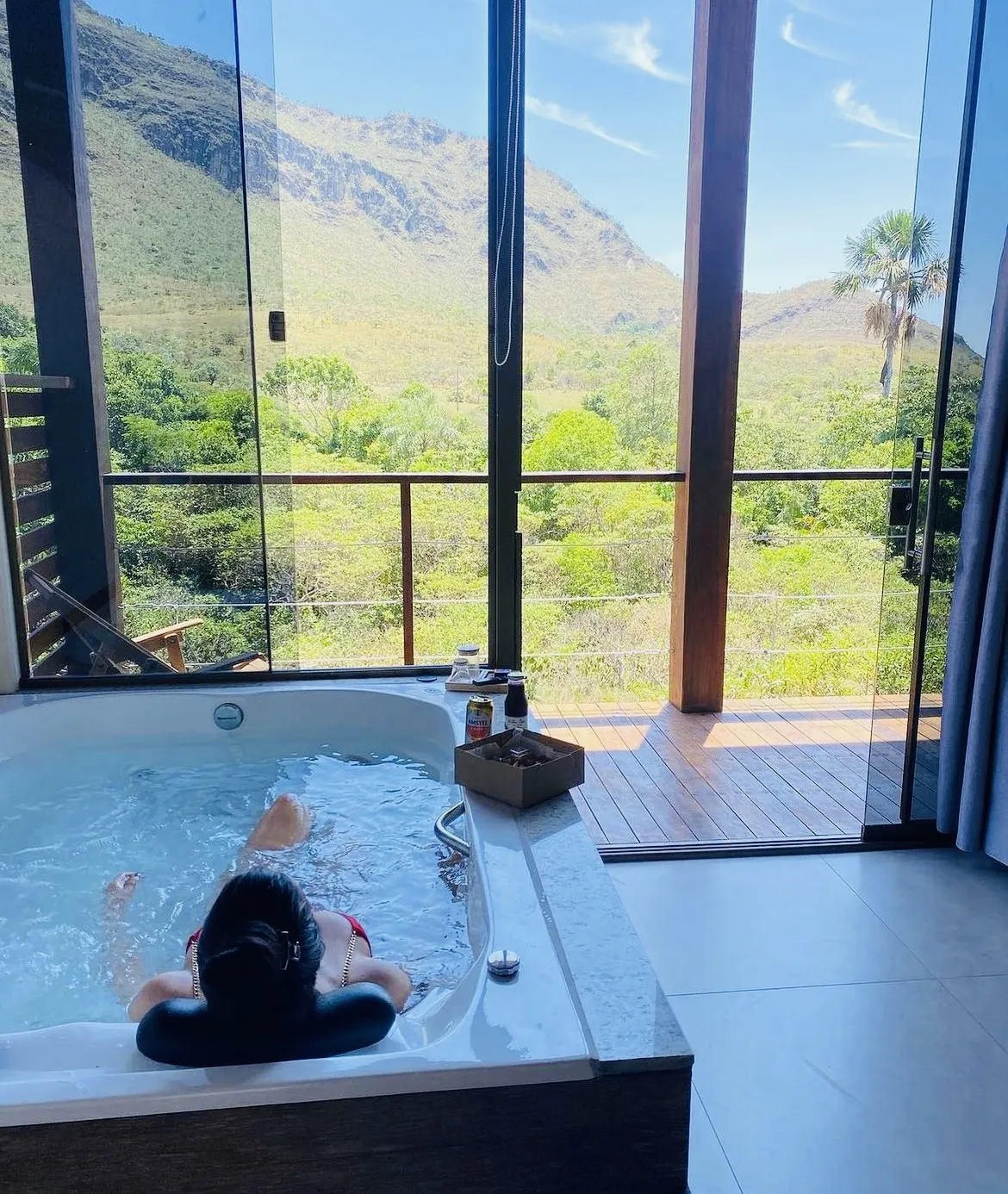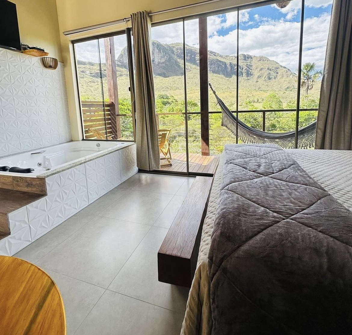 A Pousada conta com 4 (quatro) suítes localizadas na casa principal, sendo 2 (duas) com vista para o sagrado Morro da Baleia. As opções de chalés, além da vista privilegiada, são equipadas com ar-condicionado e oferecem maior privacidade. Por fim, as opções mais luxuosas são os Bangalôs, amplos, com banheiras de hidromassagem, opções de roupão e diversas outras amenidades, além da melhor vista na região da Chapada dos Veadeiros. São acomodações sustentáveis, que mesclam a beleza da Chapada com o conforto que os dias de descanso pedem! Os bangalôs são uma experiência verdadeiramente única!