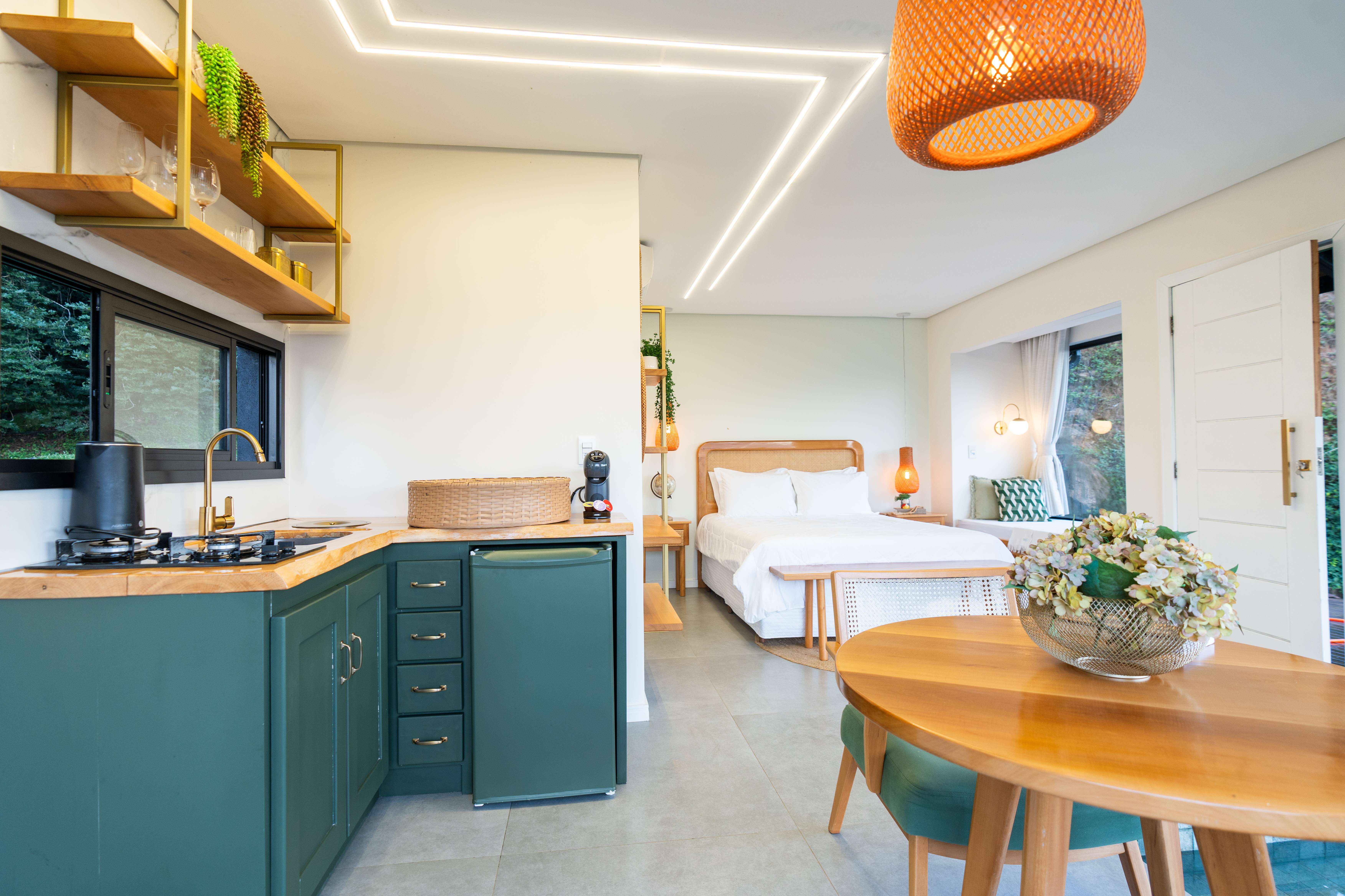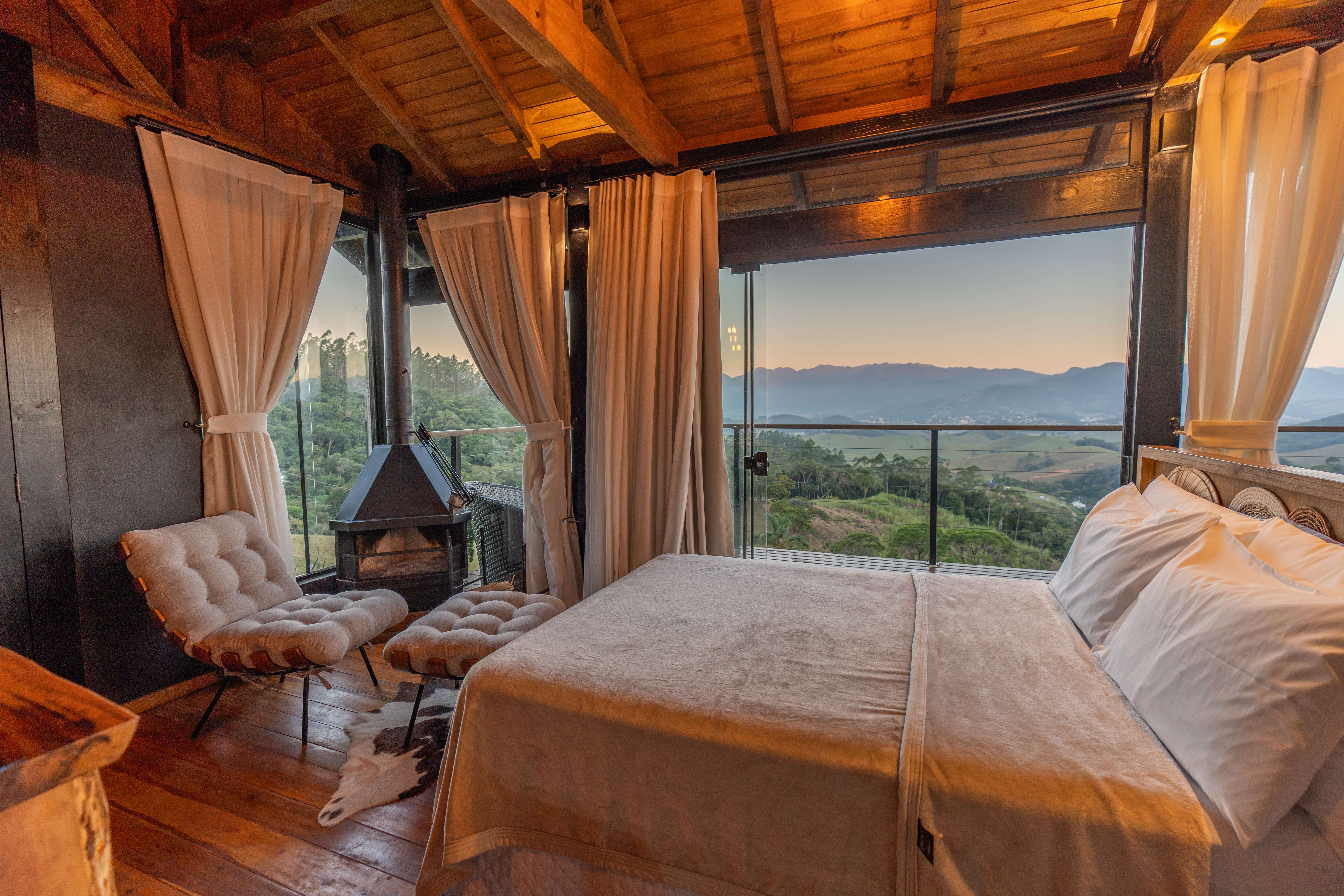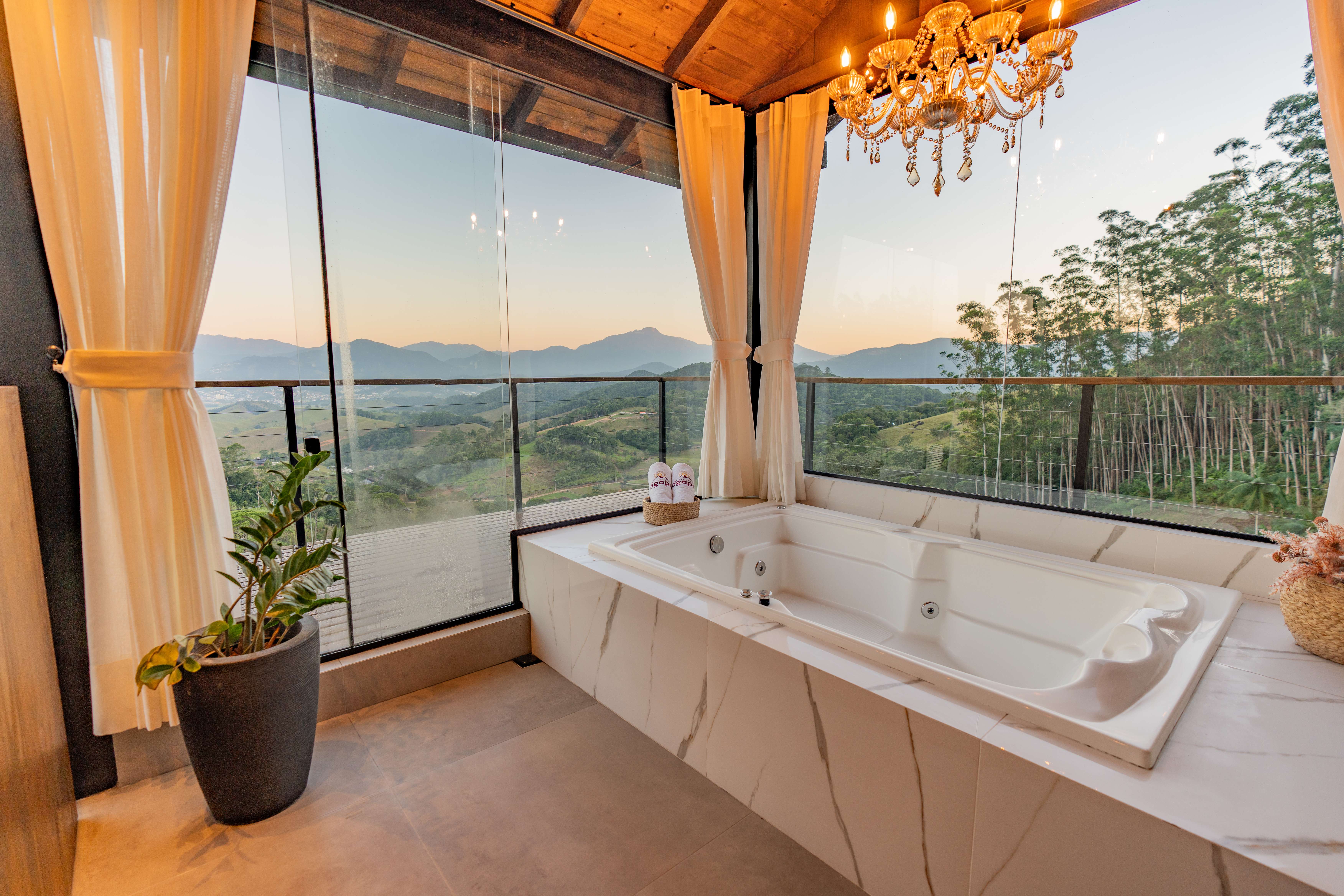 Ar condicionado Secador de cabelo TV a cabo / Smart TV Jacuzzi / Ofurô / Banheira Coberta Frigobar Lareira Máquina de Café Enxoval de Luxo (+ Roupão e Pantufa) Sauna Cozinha Estação de trabalho (mesa e cadeira) Piscina Aquecida ou climatizada Borda Infinita Coberta