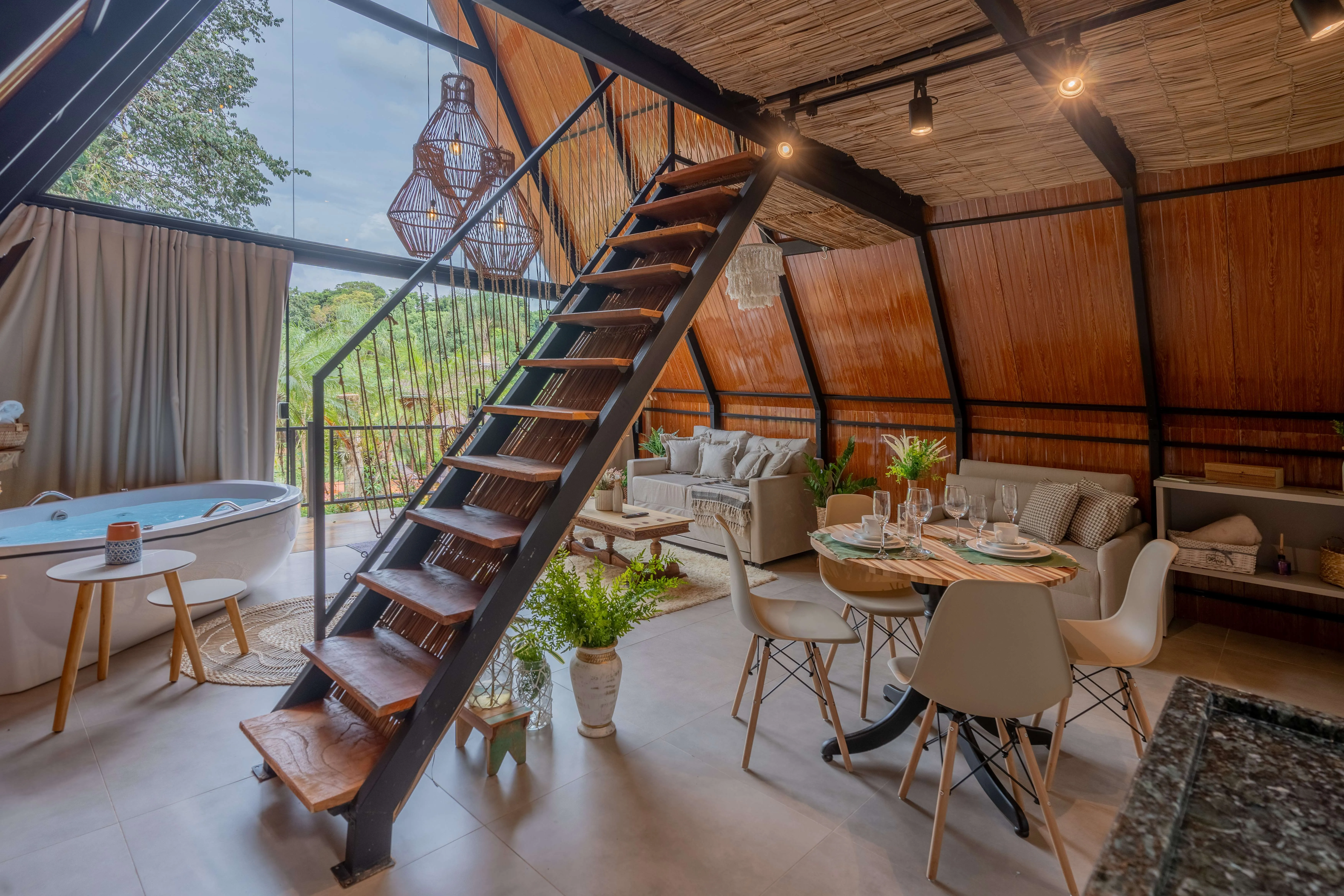 Ar condicionado Secador de cabelo TV a cabo / Smart TV Jacuzzi / Ofurô / Banheira Coberta Frigobar Lareira Máquina de Café Enxoval de Luxo (+ Roupão e Pantufa) Sauna Cozinha Estação de trabalho (mesa e cadeira) Piscina Aquecida ou climatizada Borda Infinita Coberta