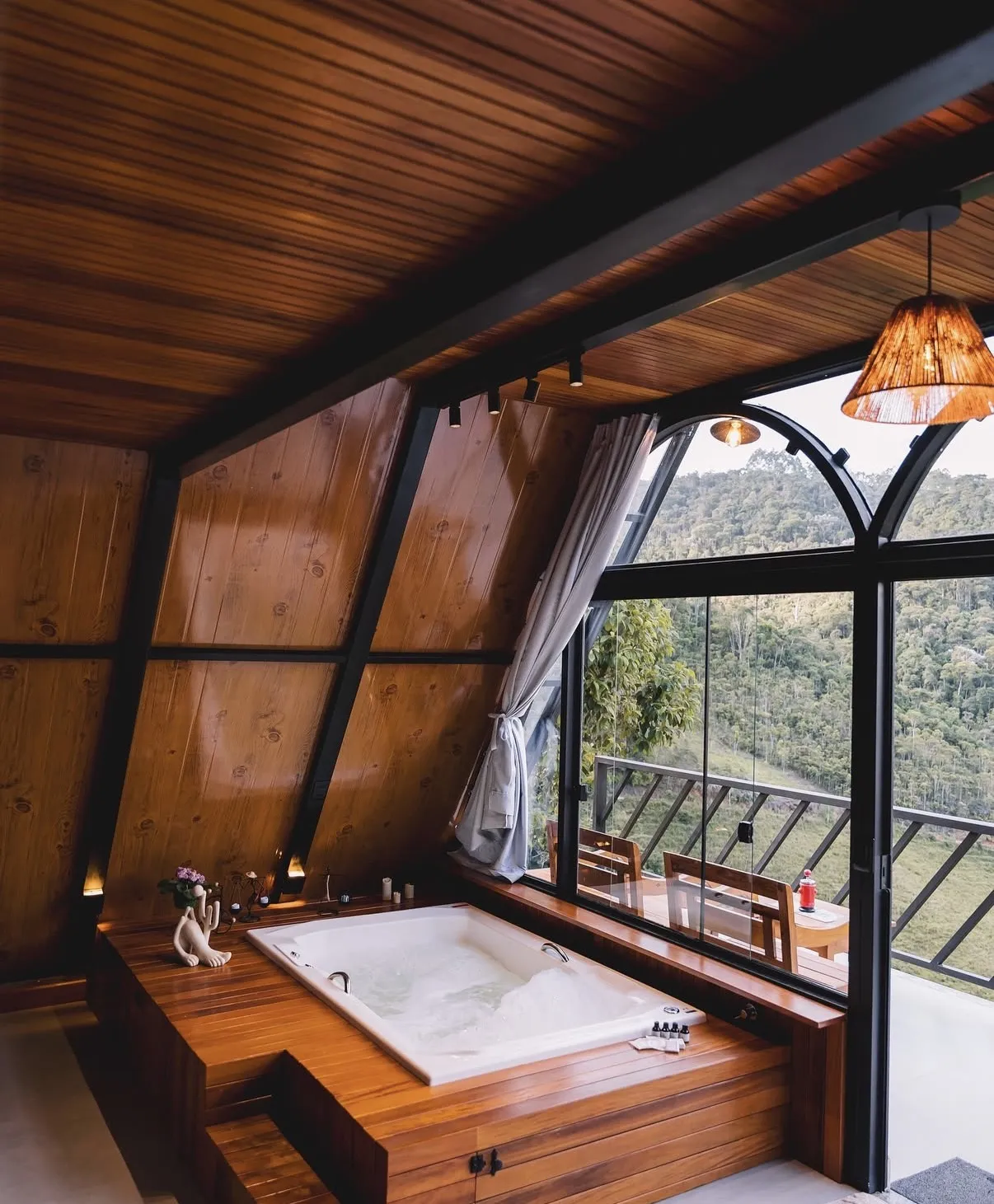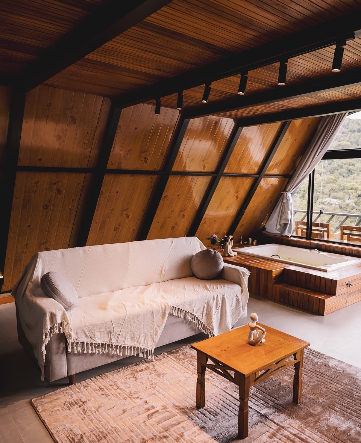 Lugar único e tranquilo nas montanhas capixabas, região reconhecida pelo clima agradável e pela forte conexão com a natureza. A cabana está cercada pela mata atlântica e oferece vista ampla, silêncio e privacidade, com quarto confortável e bem iluminado, pensado para proporcionar descanso e bem-estar em meio ao cenário natural.