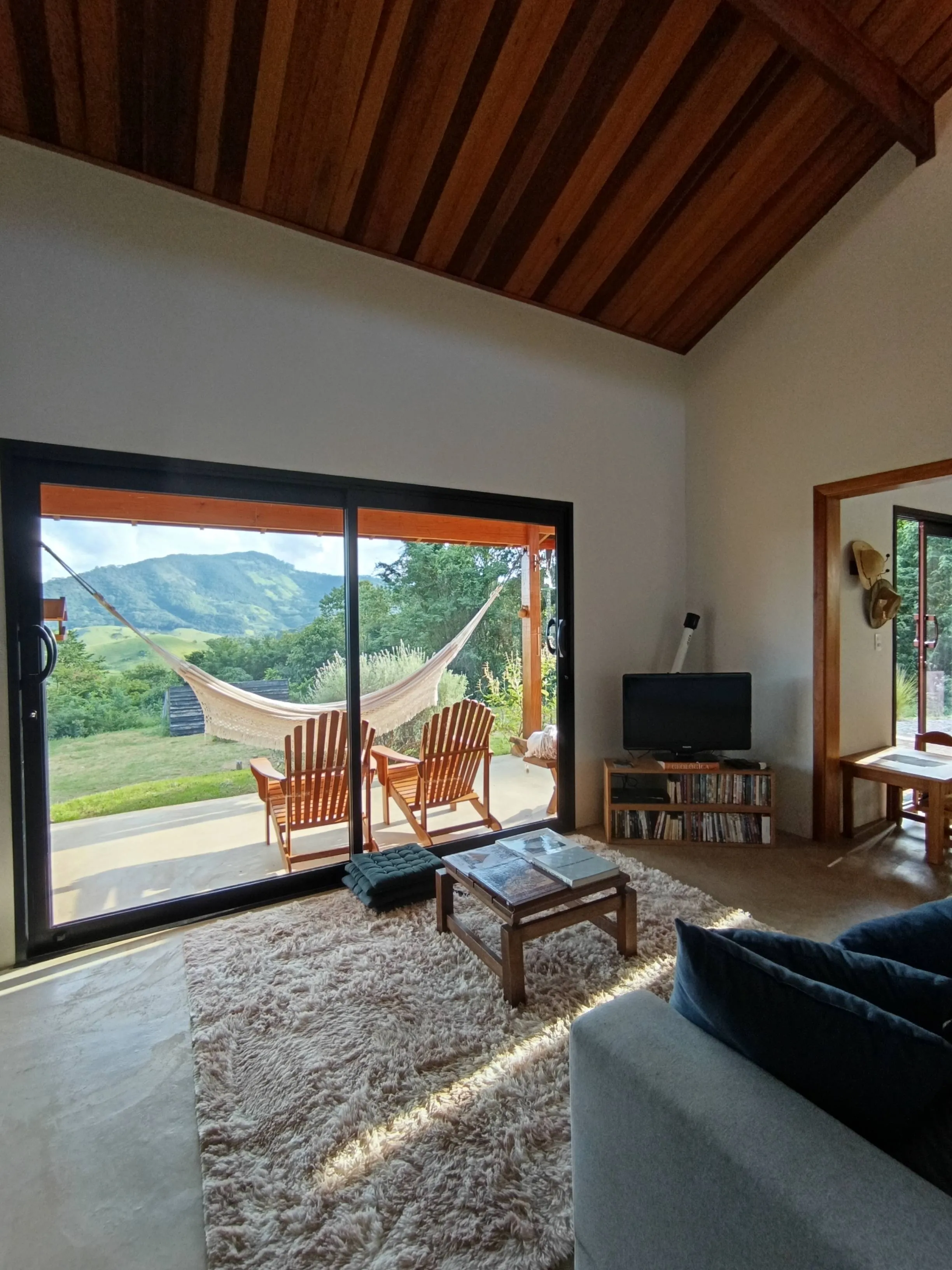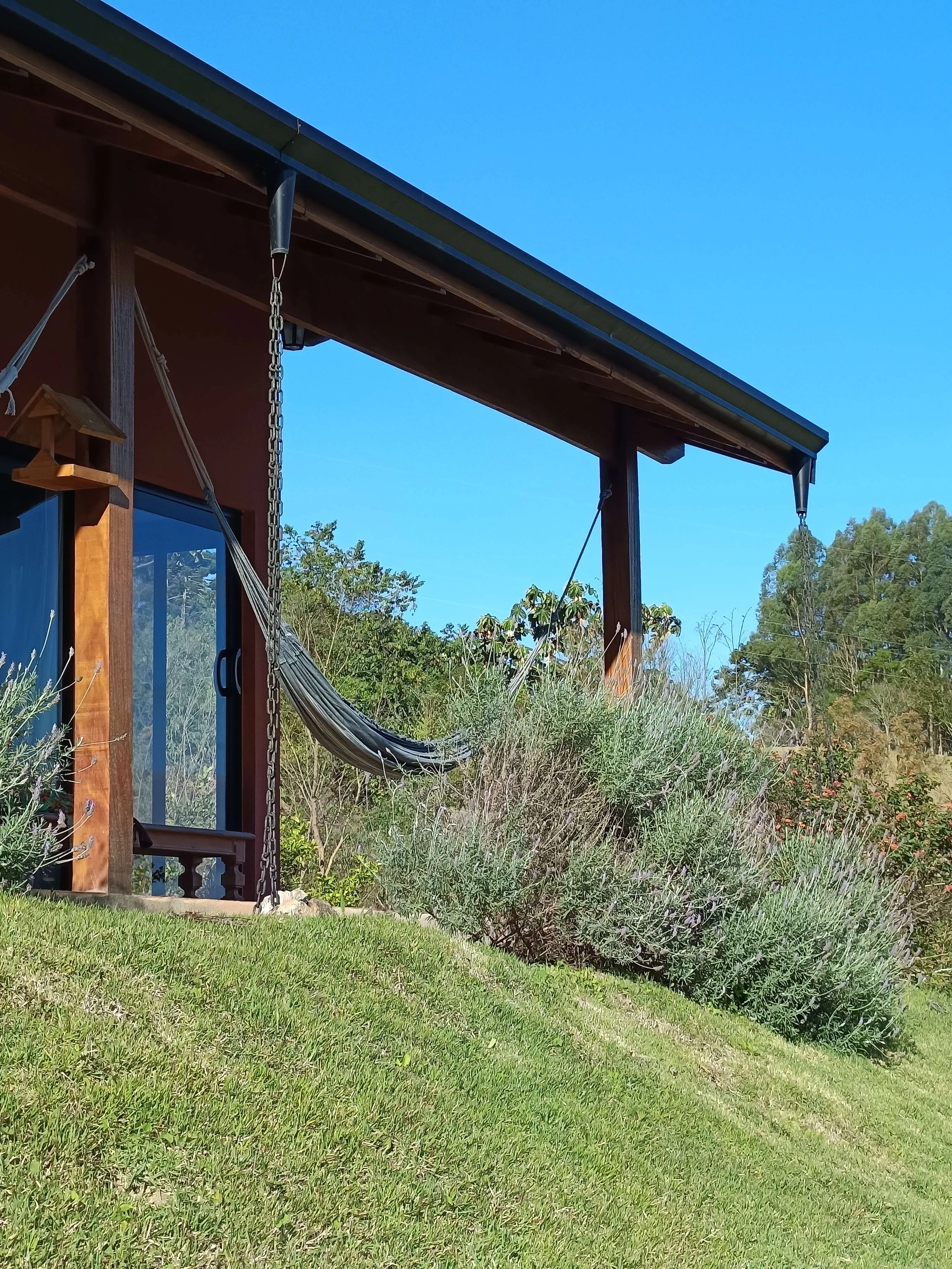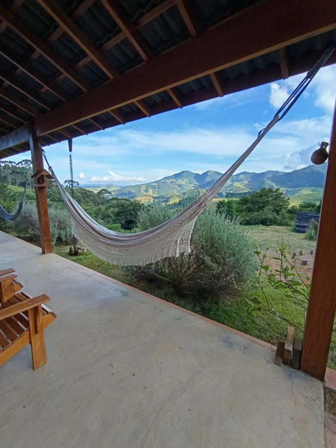 O refúgio convida ao relaxamento em um ambiente exclusivo, com jacuzzi e vista privilegiada para as montanhas. Ideal para casais ou famílias que desejam se afastar do ritmo intenso da cidade, o espaço oferece tranquilidade em meio à natureza, sendo abastecido por água de nascente própria. A varanda se torna um convite para momentos de leitura ou descanso na rede, envoltos pelo perfume das lavandas e pela paisagem inspiradora ao redor.