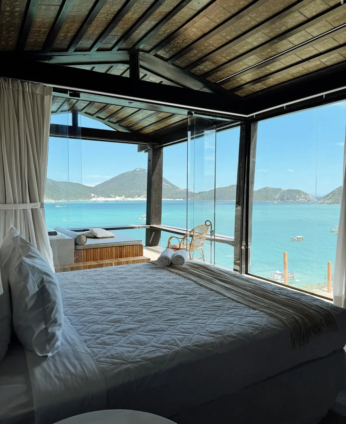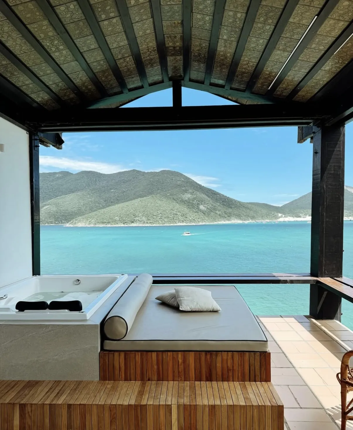 Suites com ou sem Hidro, todas com a vista deslumbrante do mar de Arraial do Cabo.