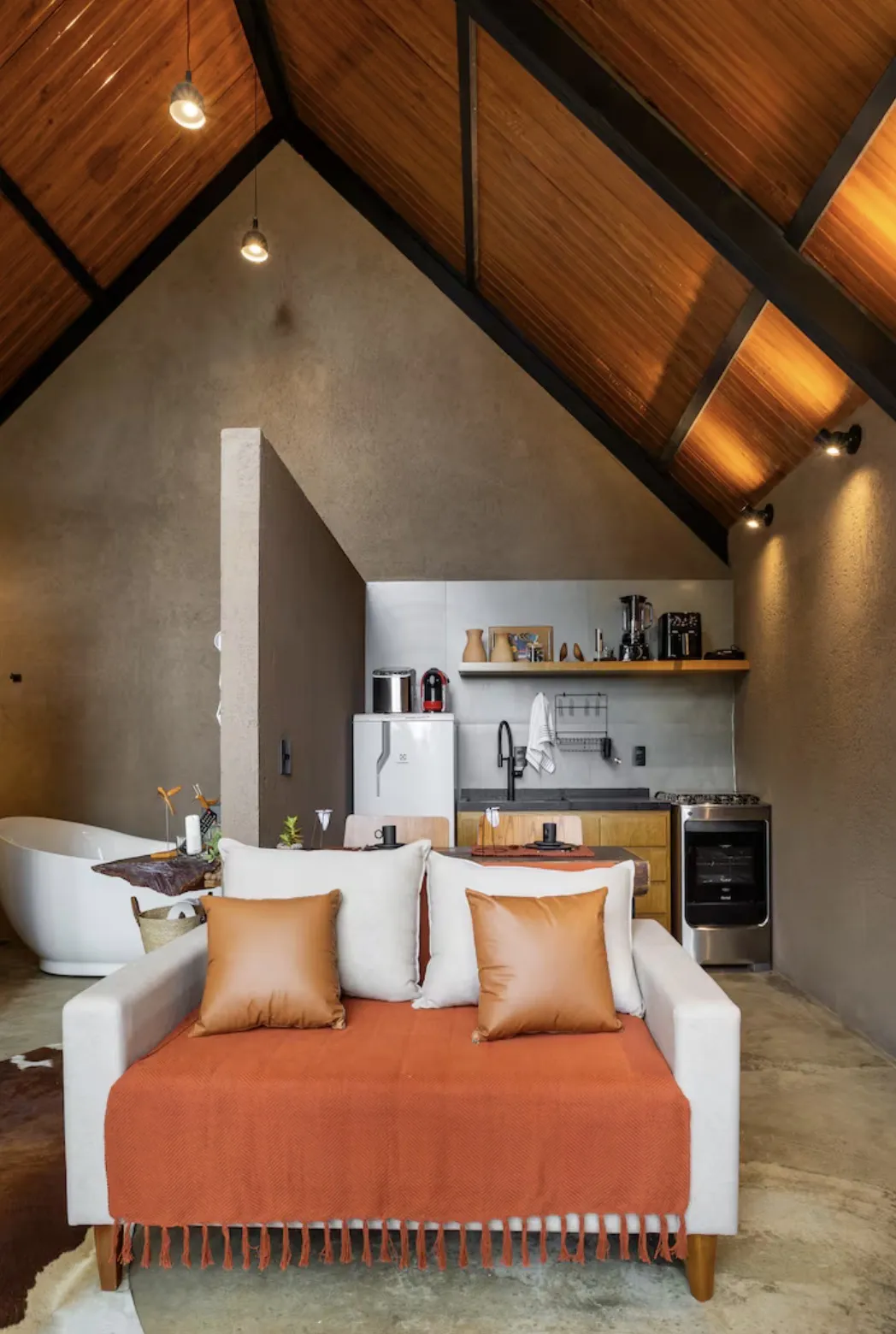 Com arquitetura integrada ao entorno natural e ambientes cuidadosamente planejados, a hospedagem convida a experiências voltadas ao bem-estar, ao conforto e à convivência a dois. O cenário favorece o relaxamento, a contemplação e a reconexão emocional, transformando cada estadia em uma vivência serena e memorável em meio à mata.