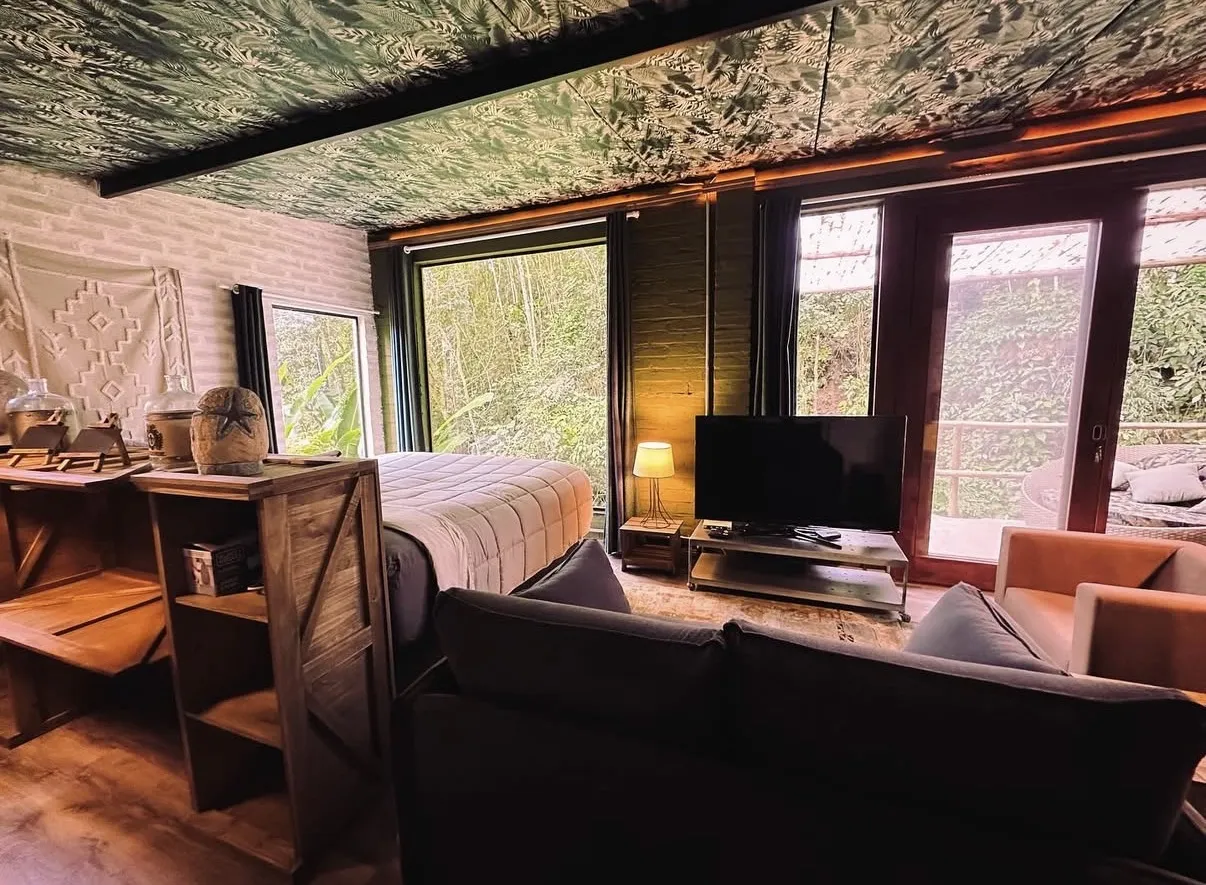 São 3 acomodações, a menor com capacidade para 2 pessoas e a maior, 5 pessoas