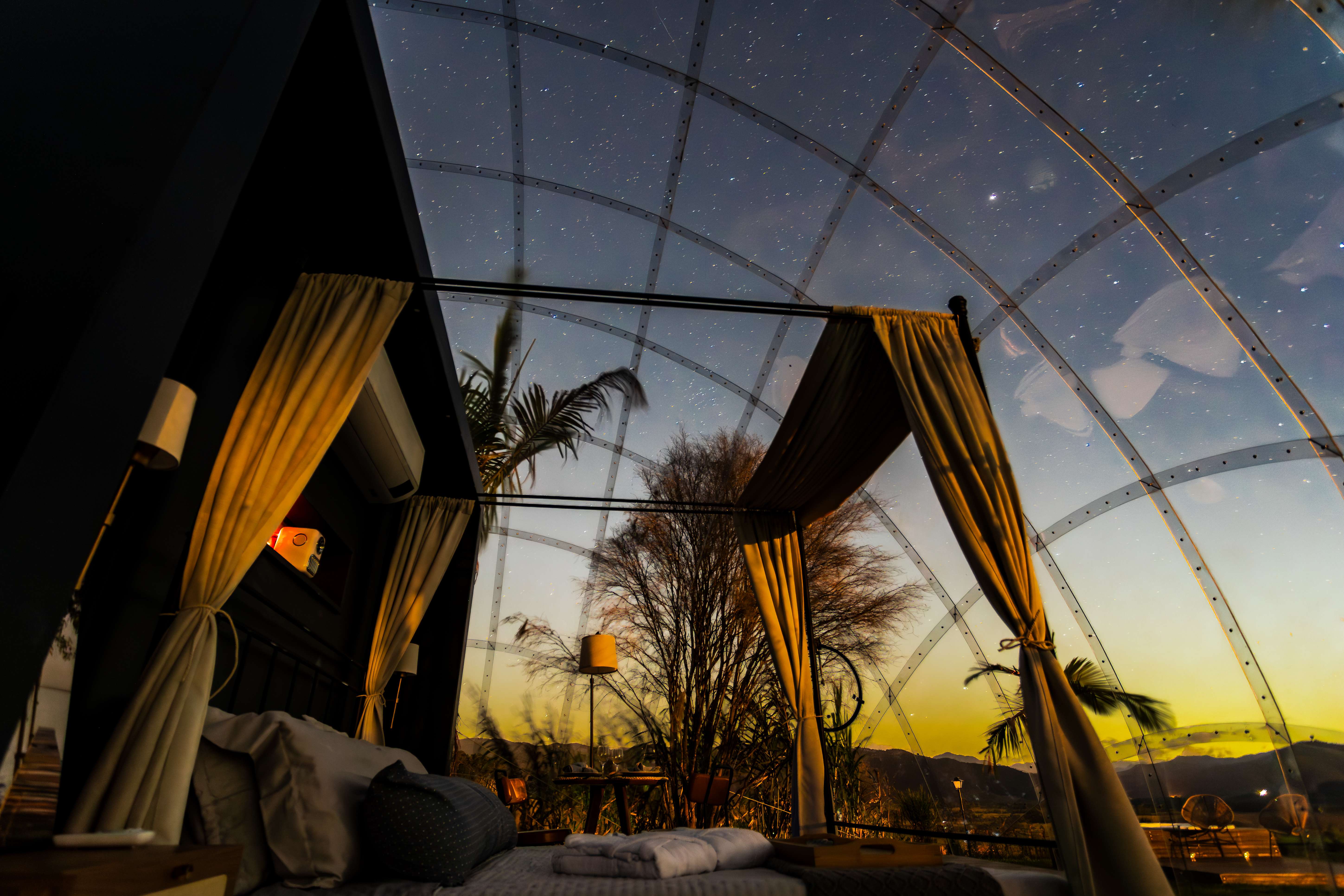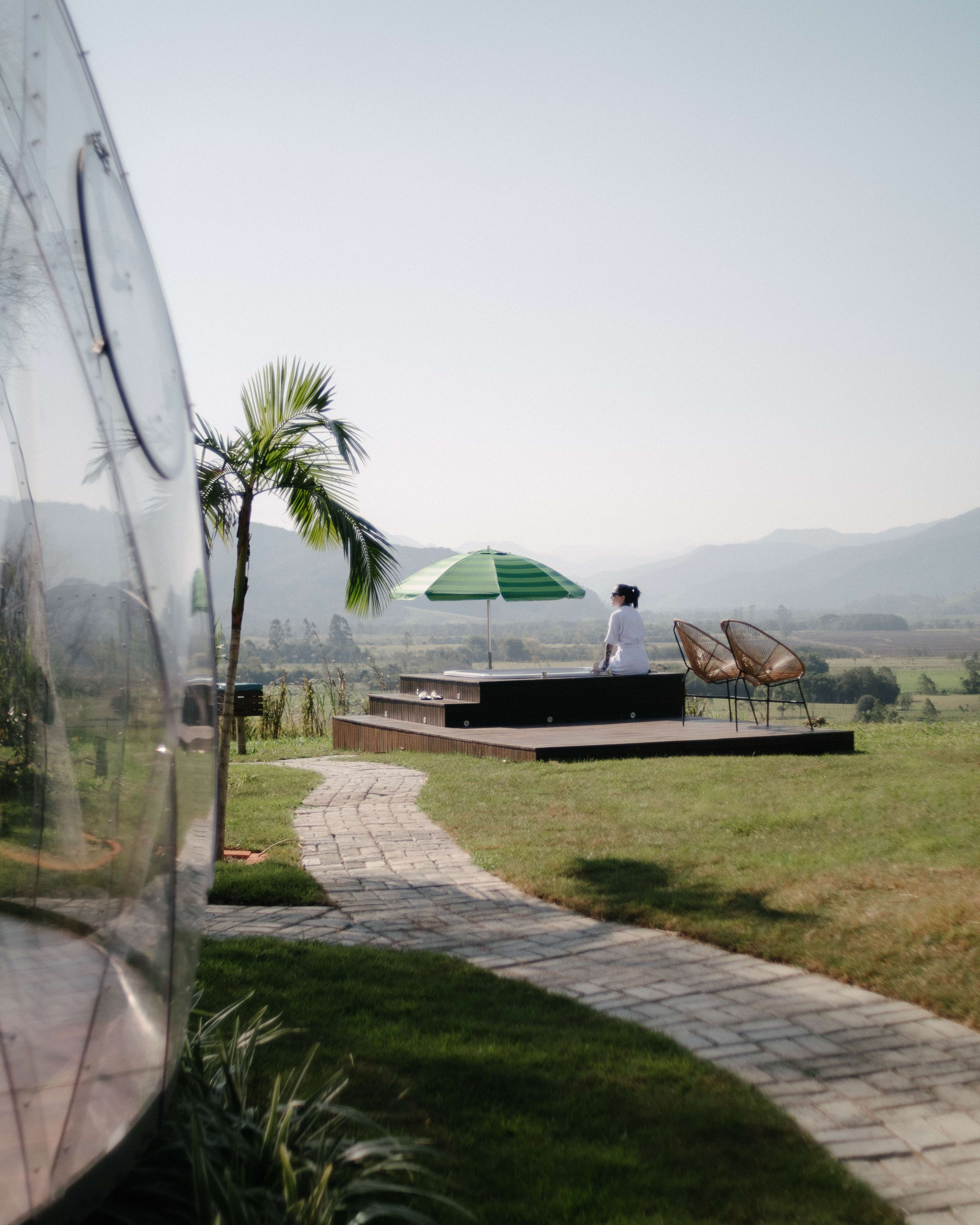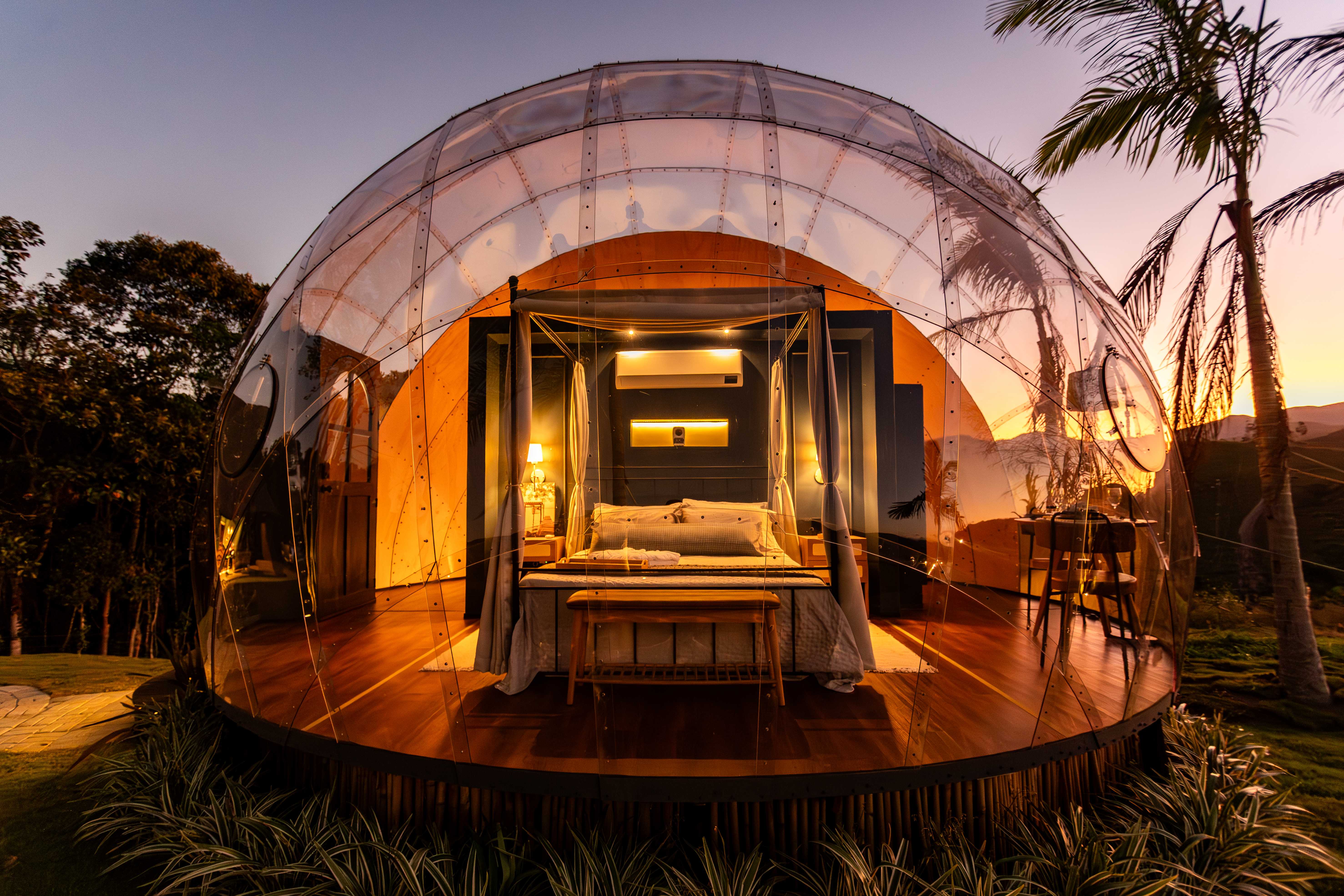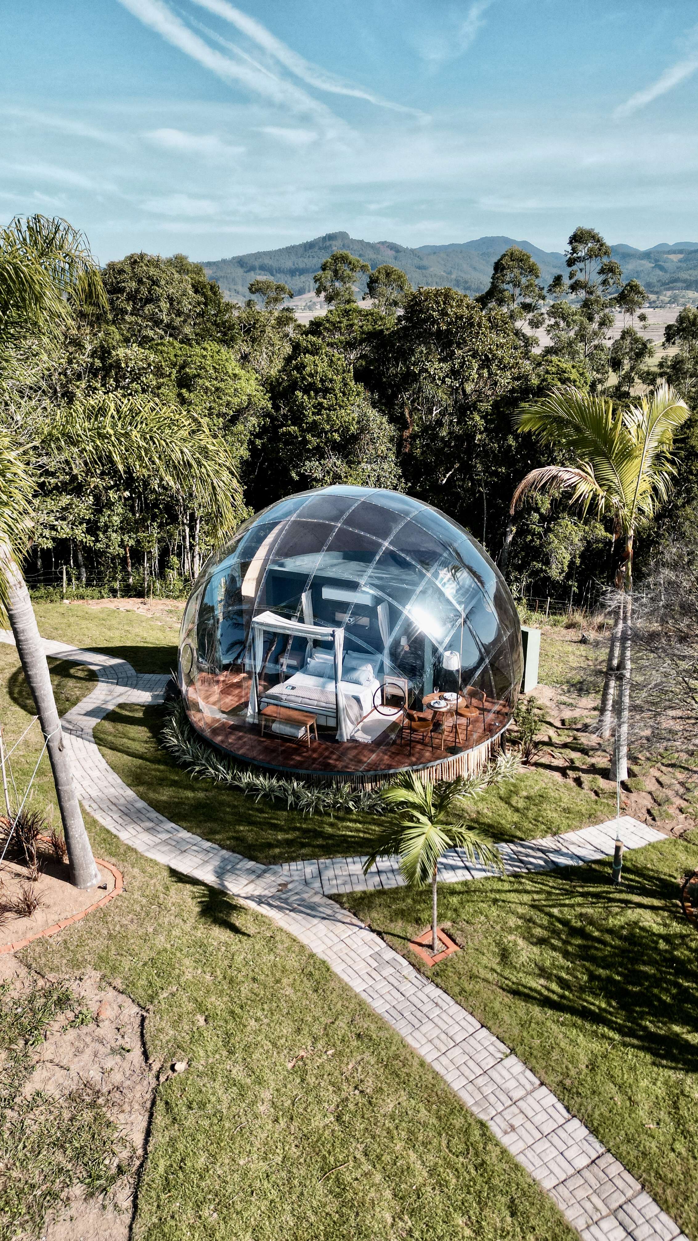 Localizado em Imaruí - SC, a uma hora e meia de Florianópolis, o domo Galaxy está equipado com tudo o que é necessário para viver uma experiência imersa na natureza sem abrir mão de conforto e luxo! Possui uma cozinha completa, cesta de café da manhã INCLUSA, banheiro interno, ar condicionado quente e frio, automação com Alexa, cama queen e projetor de cinema! Na área externa, há um deck com banheira de hidromassagem aquecida, fire-pit e área gourmet com churrasqueira.