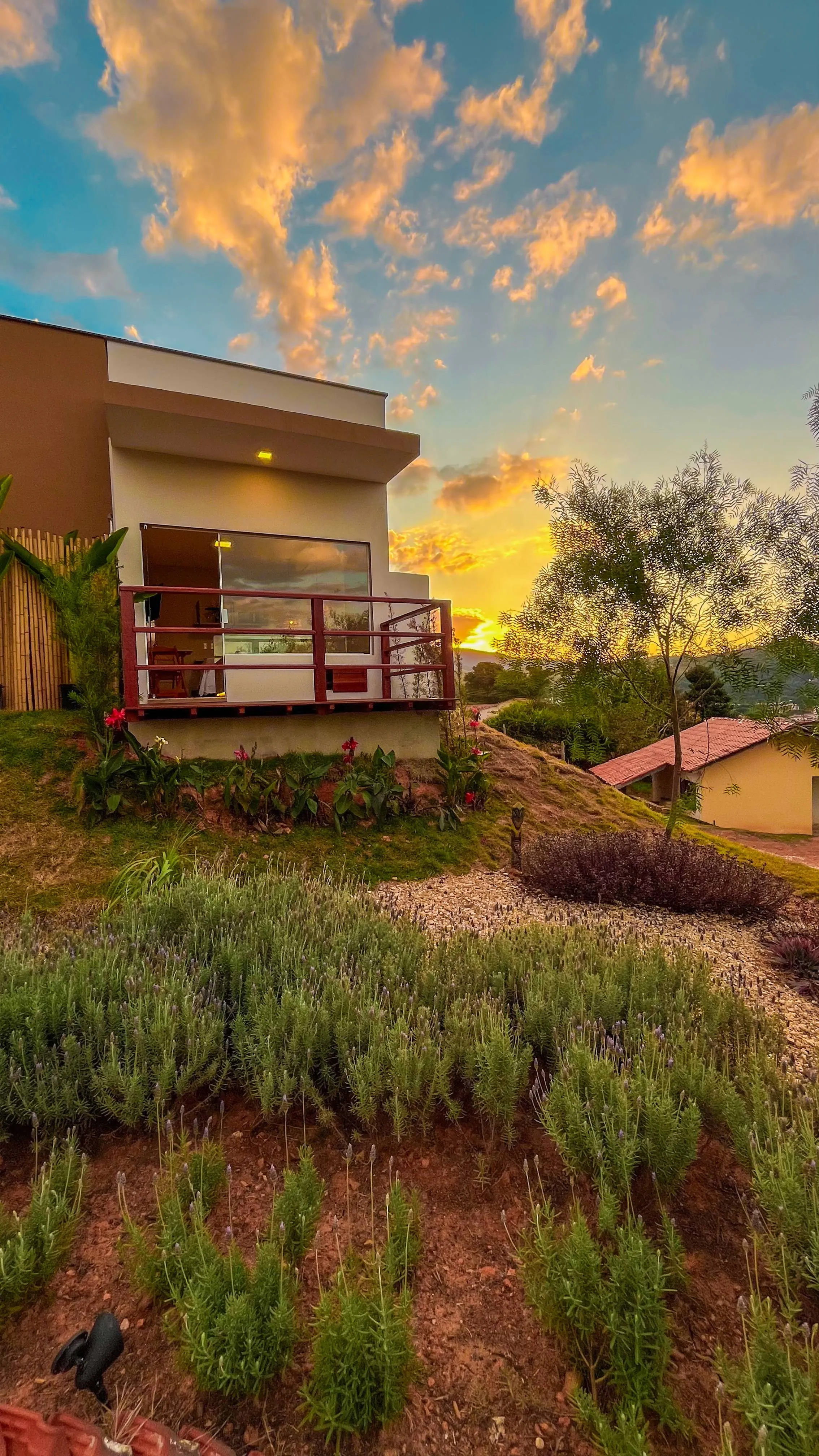 Suítes com hidromassagem, rodeadas por jardins de lavandas, proporcionam um ambiente perfeito para relaxamento e bem-estar. Acomodação ideal para quem busca tranquilidade, com vistas deslumbrantes das montanhas e conexão direta com a natureza. Um refúgio encantador, perfeito para quem deseja momentos de paz e conforto.