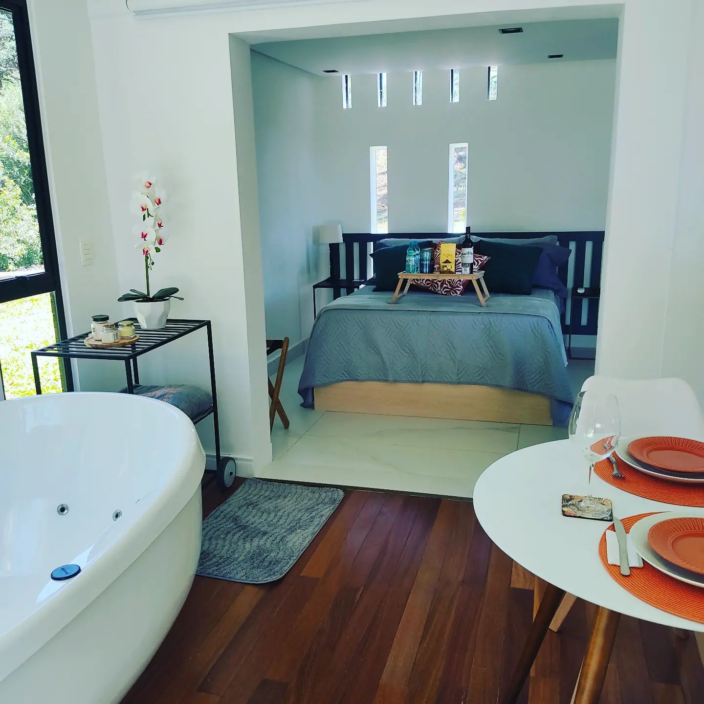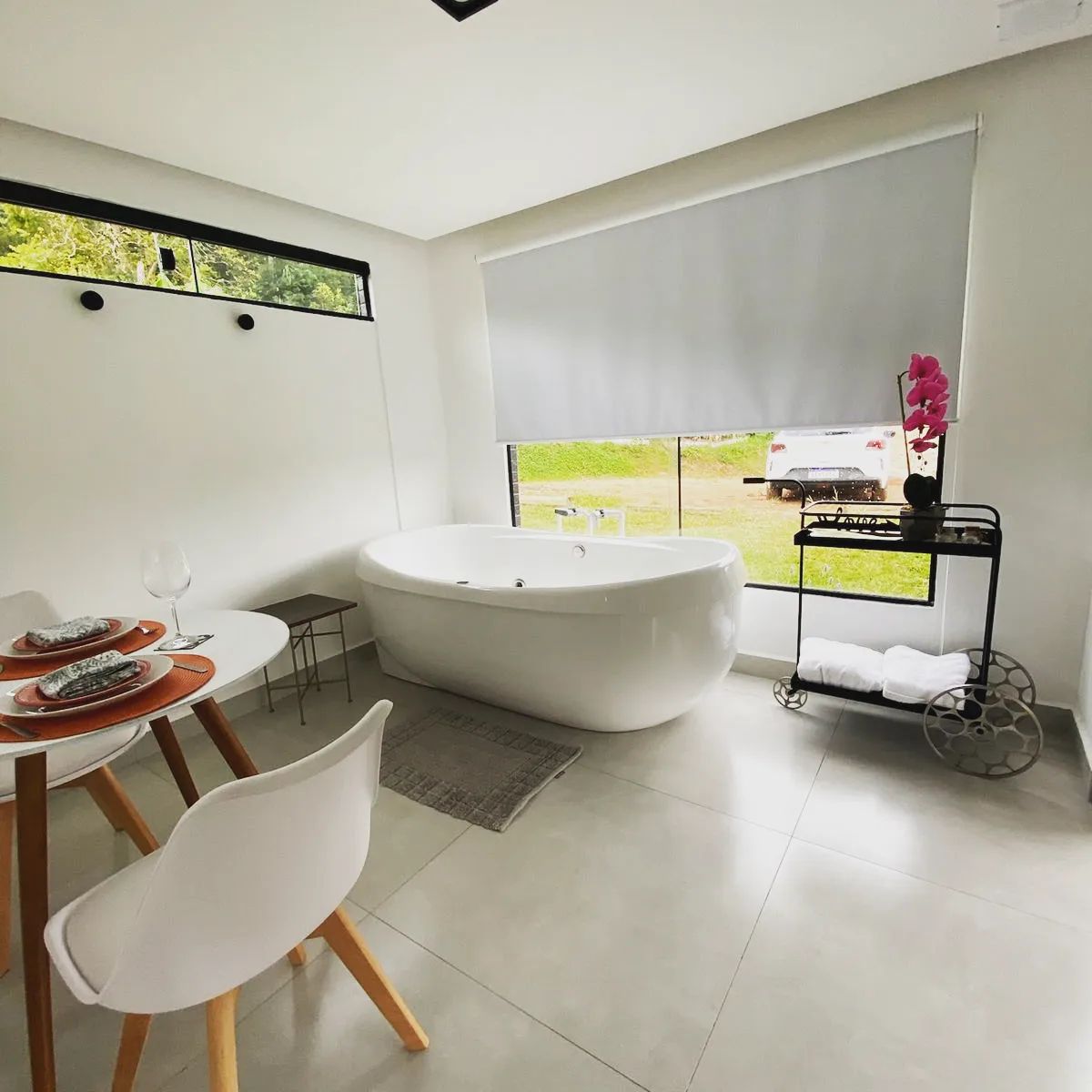 Sinta a natureza e reequilibre-se. Cabanas com design moderno que unem a beleza natural e o conforto. Apenas a 45 minutos do centro de Curitiba, desligue-se da vida agitada e reconecte-se com quem você ama. Desfrute de jacuzzi com hidromassagem, balanço infinito, banheiras externas com vista para um bosque de araucárias. Tudo isso em um amplo terraço com um pôr do sol de tirar o fôlego.