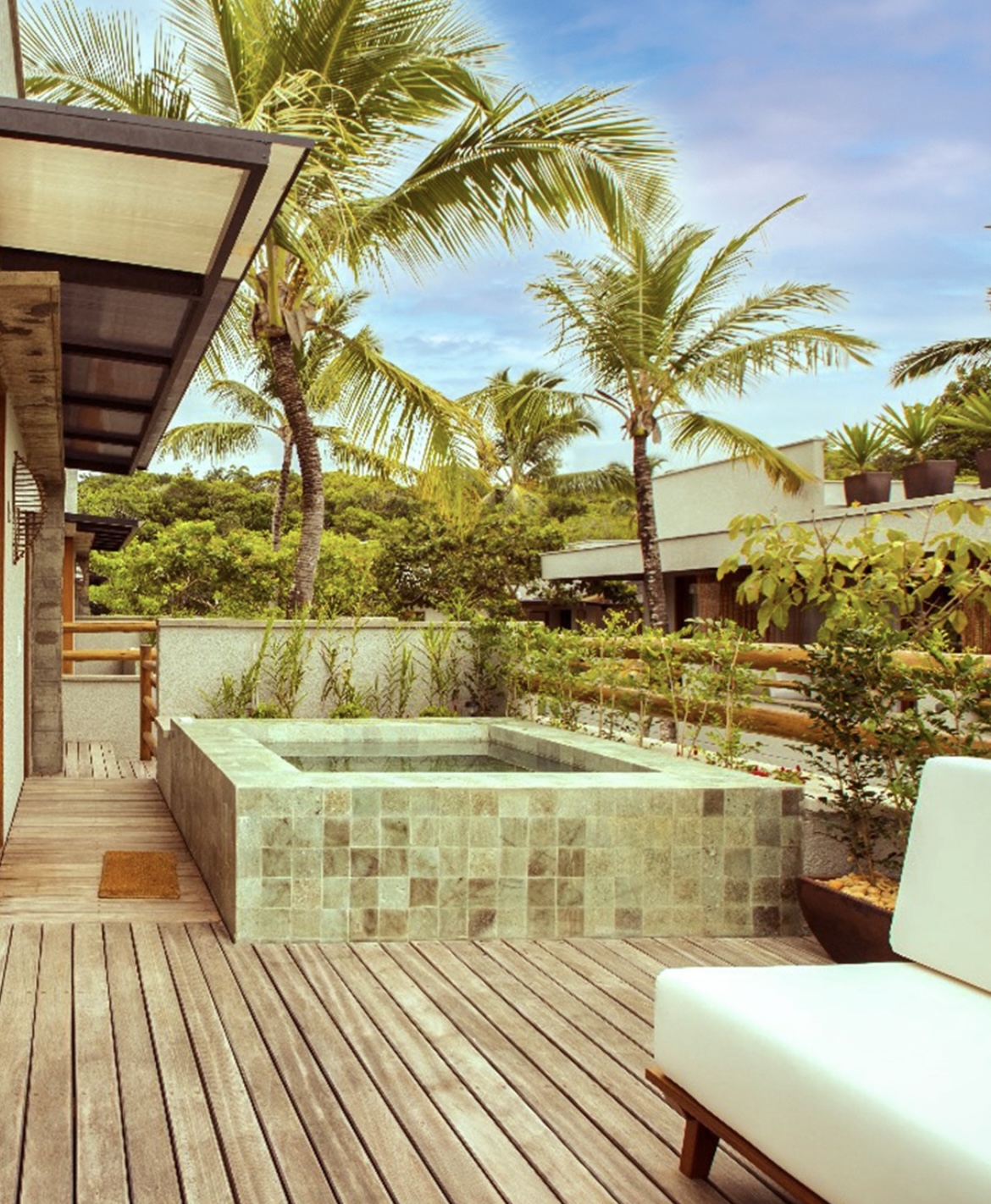 - Área de Lazer: Jacuzzi em pedra Hijau e Sala de massagem individual mediante agendamento antecipado (serviço cobrado a parte).