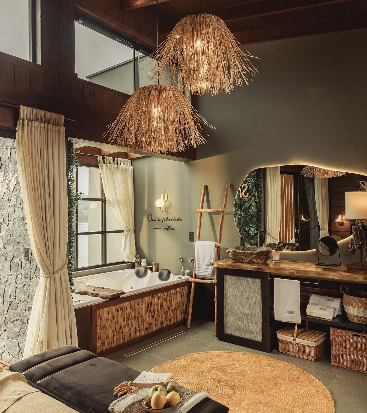 Ar condicionado Secador de cabelo TV a cabo / Smart TV Jacuzzi / Ofurô / Banheira Coberta Frigobar Lareira Máquina de Café Enxoval de Luxo (+ Roupão e Pantufa) Sauna Cozinha Estação de trabalho (mesa e cadeira) Piscina Aquecida ou climatizada Borda Infinita Coberta
