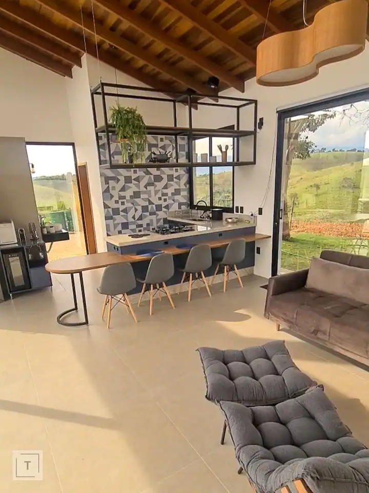 O Solarium Mantiqueira é um refúgio contemporâneo na Serra da Mantiqueira, perfeito para quem busca conforto, design moderno e tecnologia. Conta com SPA de bordas infinitas controlado por comandos de voz, camas king size, enxoval exclusivo, cozinhas completas com área gourmet e churrasqueira, além de área gramada privativa. A estrutura inclui aquecimento central pelo piso, persianas motorizadas e vidros inteligentes que oferecem vistas panorâmicas ou total privacidade. Um cinema interno/externo proporciona momentos de lazer inesquecíveis. Combinando inovação e a beleza natural da região, o Solarium Mantiqueira oferece uma experiência única e exclusiva.