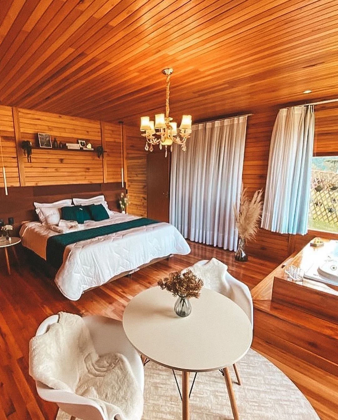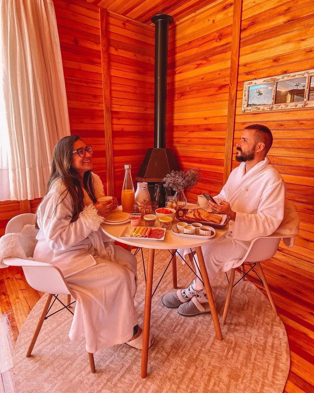 São dois chalés; o Pinha e o Pinhão, ambos exclusivos para casais.