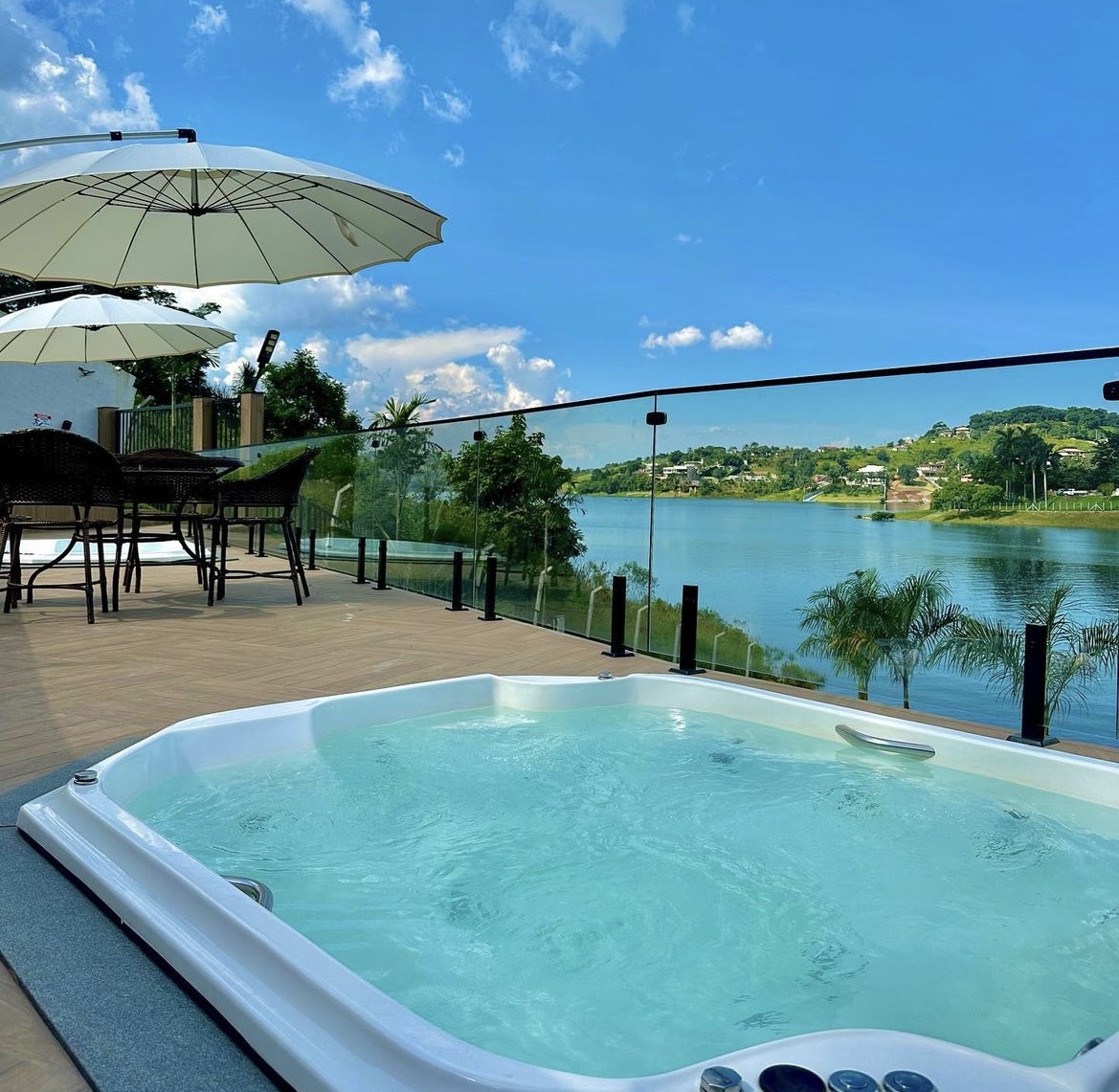Ar condicionado Secador de cabelo TV a cabo / Smart TV Jacuzzi / Ofurô / Banheira Coberta Frigobar Lareira Máquina de Café Enxoval de Luxo (+ Roupão e Pantufa) Sauna Cozinha Estação de trabalho (mesa e cadeira) Piscina Aquecida ou climatizada Borda Infinita Coberta