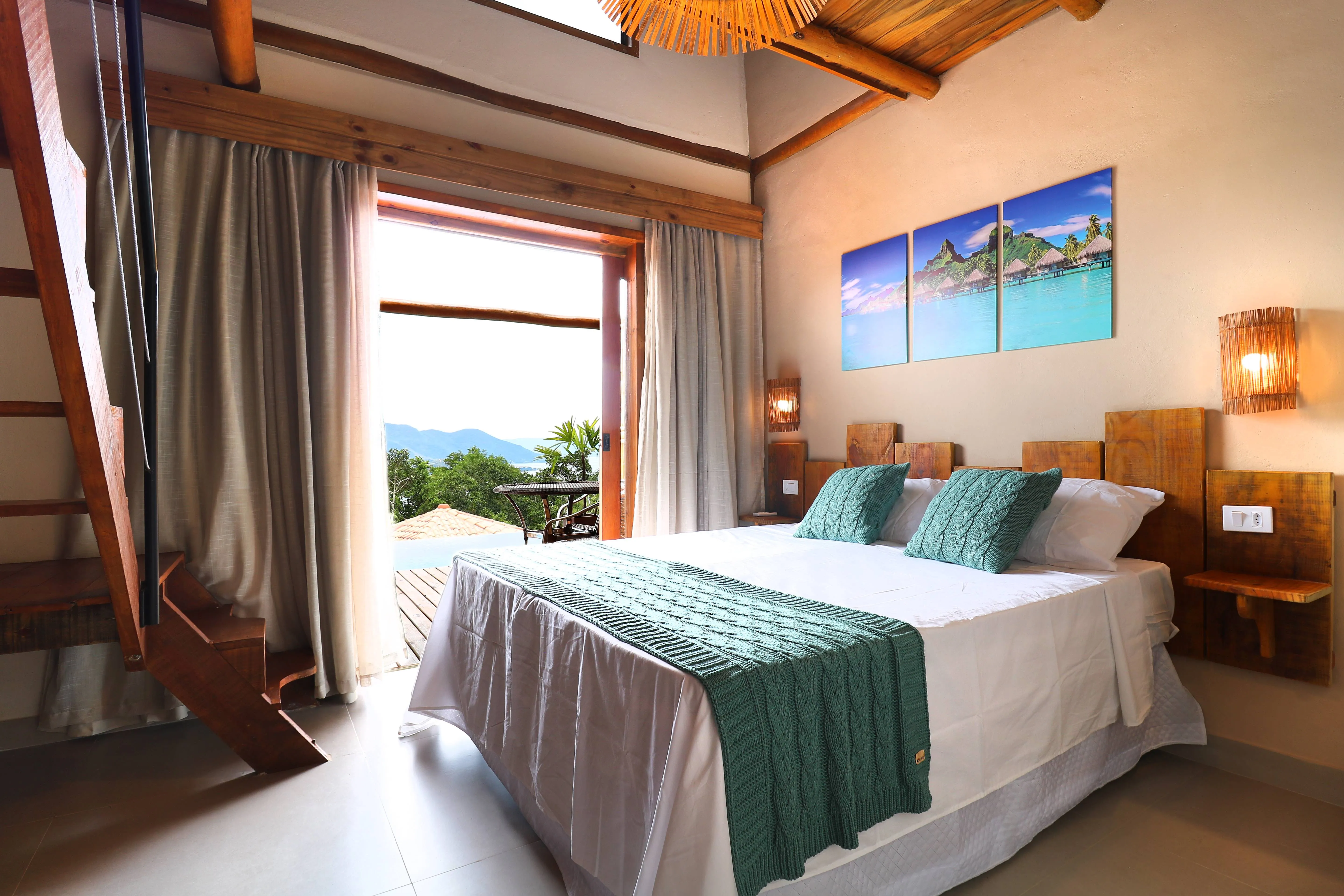 Com varanda privativa, mesa, espreguiçadeira e uma piscina de borda infinita com acesso individual, os bangalôs oferecem uma experiência única. A vista para o mar e o canal de Ilhabela cria um cenário perfeito para relaxar e admirar a paisagem.