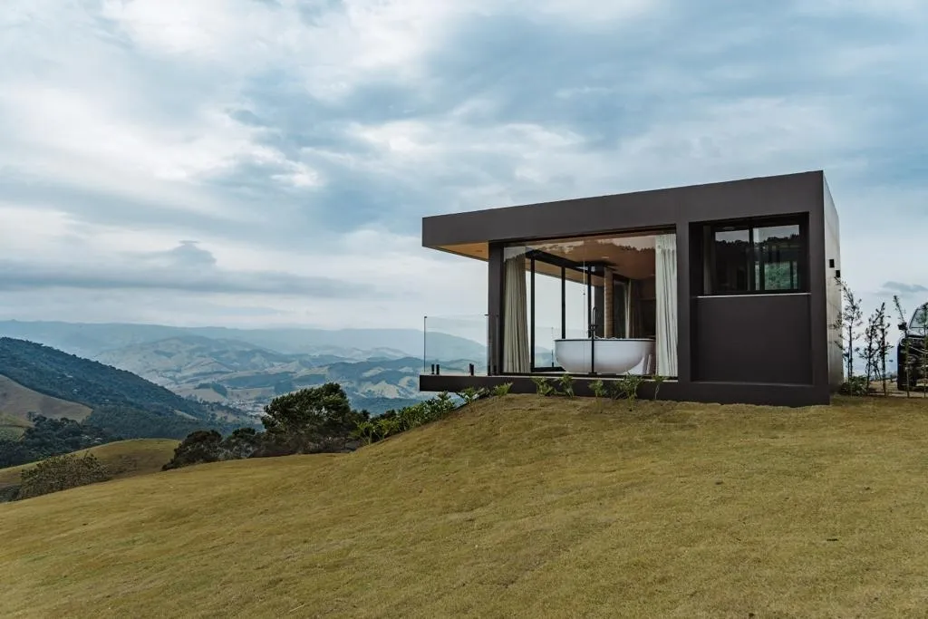 Aqui é possível passar alguns dias em chalés glamourosos, que misturam design moderno e sustentável com conforto e aconchego, em meio a um verdadeiro santuário da natureza.