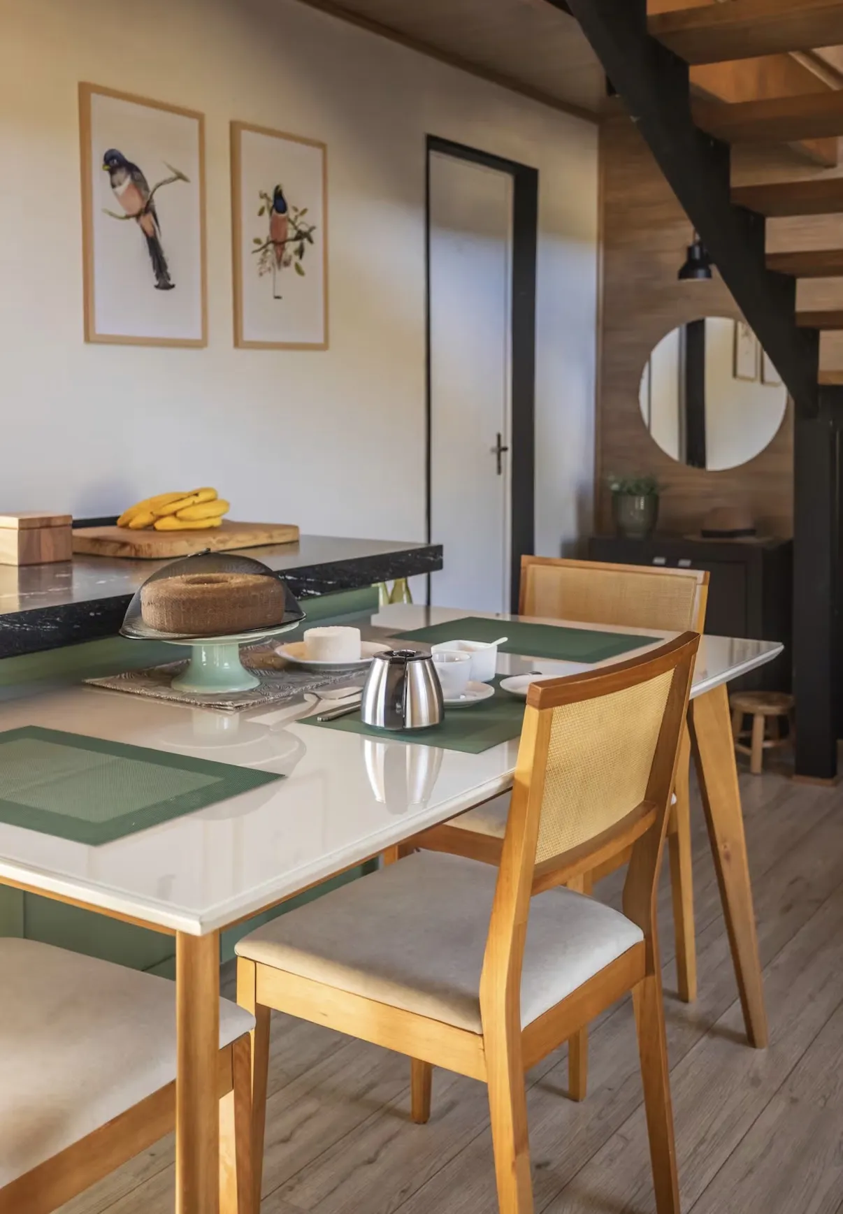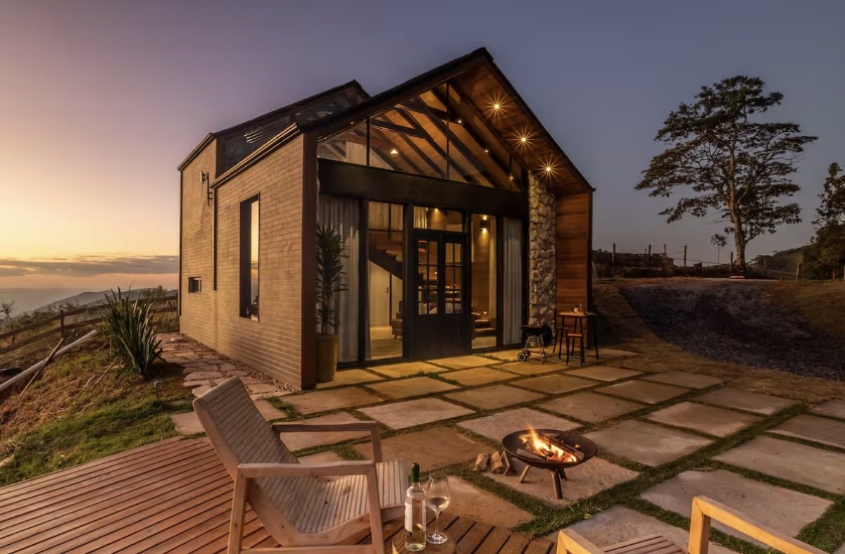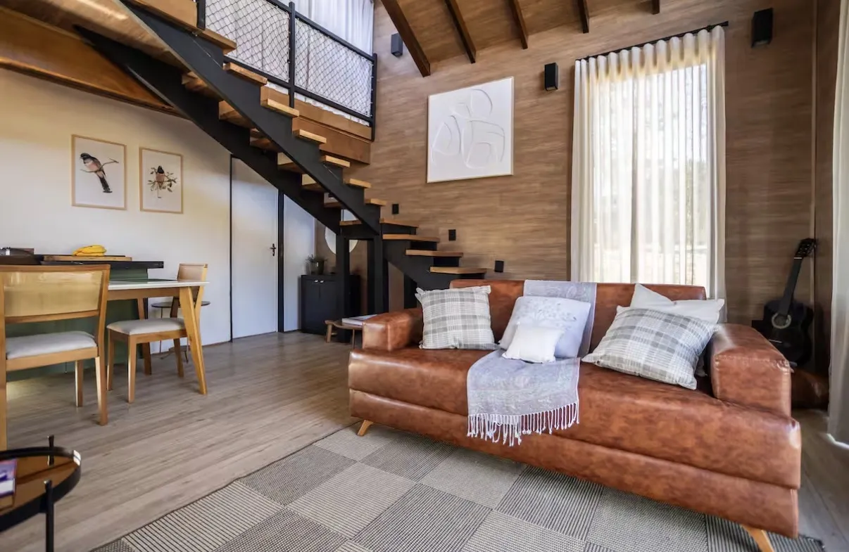 Sinta o clima fresco da serra, desfrute da cozinha equipada, do cantinho de leitura e da sala aconchegante com mezanino.