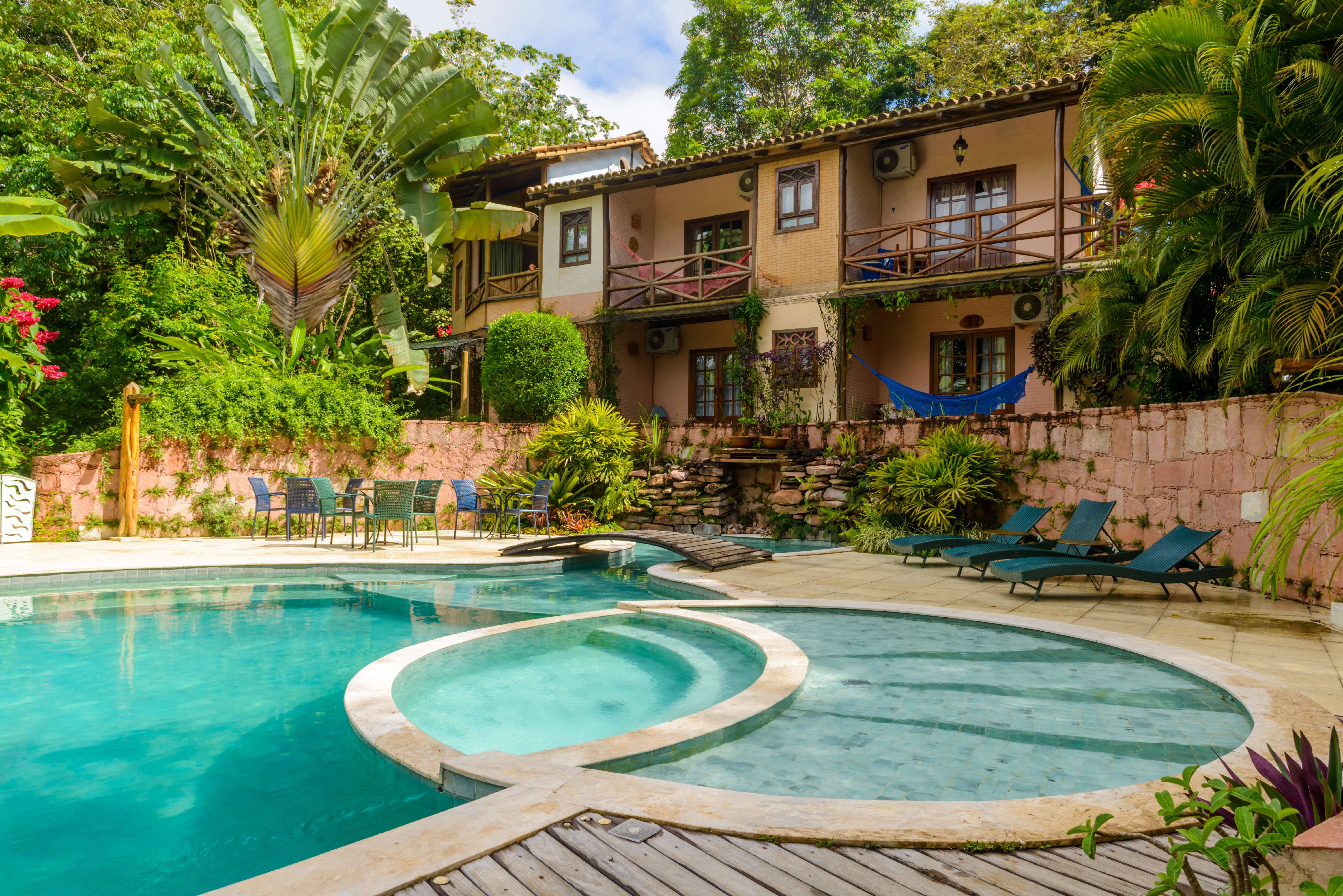 A Pousada Vila Serrano é a escolha preferida daqueles que gostam da intimidade e do acolhimento de uma pequena pousada. Construída com critérios ecológicos em uma grande área verde, a pousada possui estacionamento próprio e está localizada a cinco minutos a pé do centro histórico de Lençóis. Em estilo colonial, os charmosos apartamentos e bangalôs são equipados com TV de tela plana, ar condicionado, banheiro privativo, varanda com rede e uma decoração exclusiva de artistas plásticos. A piscina de borda infinita oferece vista para o centro histórico de Lençóis, uma hidromassagem integrada e uma cascata refrescante. O 'Bar da Vila' serve de apoio aos clientes que desfrutam desse relaxamento ideal após um dia de trilhas na Chapada Diamantina, especialmente no período da tarde, quando os visitantes retornam dos passeios. Possui um espaço integrado à natureza para práticas de Yoga.