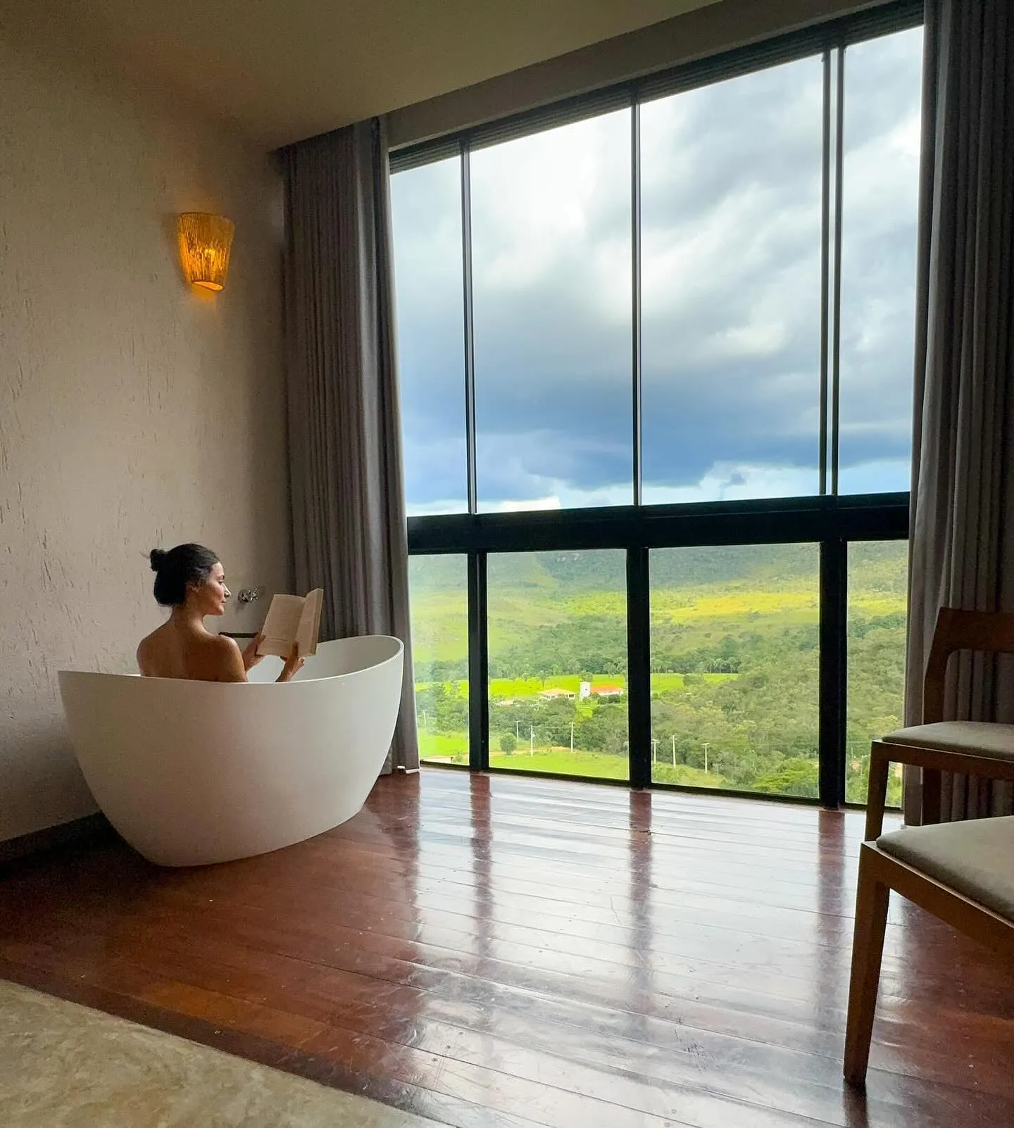 Todos os espaços foram projetados para que os hóspedes possam descansar, relaxar e apreciar a bela vista para as montanhas.