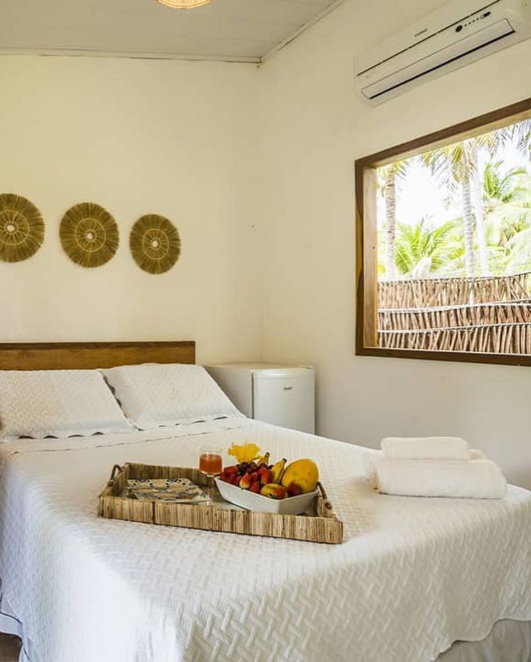 Um verdadeiro sítio à beira-mar, a Vila do Sossego está localizada em uma área exclusiva de 5.000 m2 e total privacidade, de frente para o mar. Com arquitetura rústica, possui 4 suítes (todas com ar condicionado SPLIT e chuveiro elétrico), sendo 2 suítes na casa principal e 2 suítes em chalés individuais, com capacidade total para 12 pessoas. Serviços domésticos, como cozinheira, já estão incluídos no valor da tarifa.