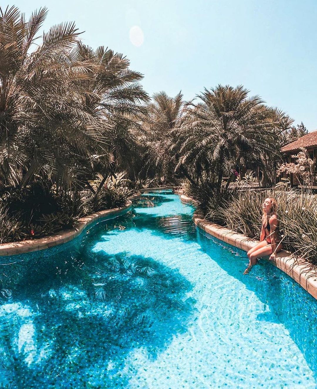 O paisagismo tropical e o estilo Rústico Chique e a decoração minimalista onde o menos é mais se espalham por todos os cantos do Hotel… mas são as plantas e as passarelas que serpenteiam a piscina de traçado longo, estreito e sinuoso que chamam mais a atenção.
