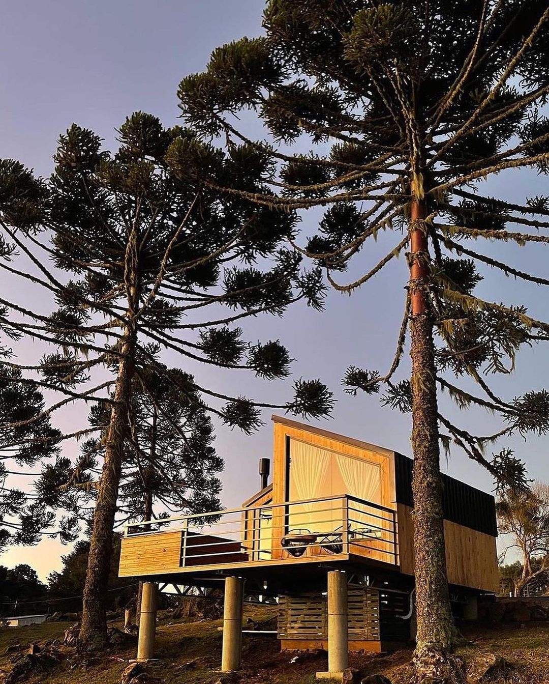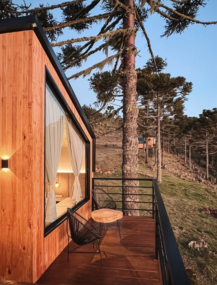 Local romântico, cheio de estilo e com muito conforto. São duas cabanas modernas e imponentes, em meio à natureza.