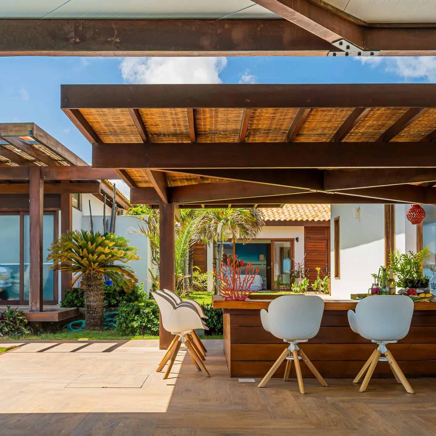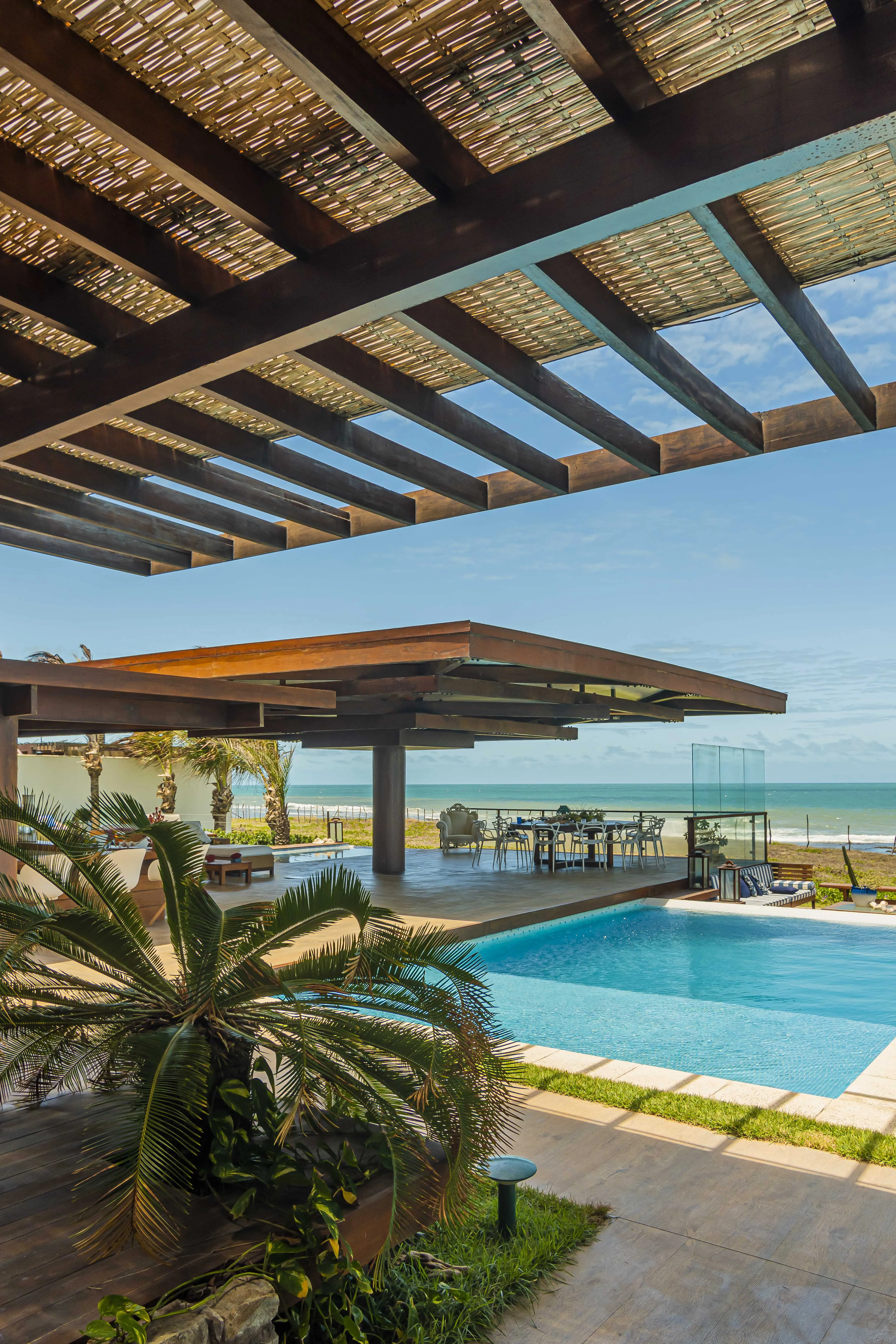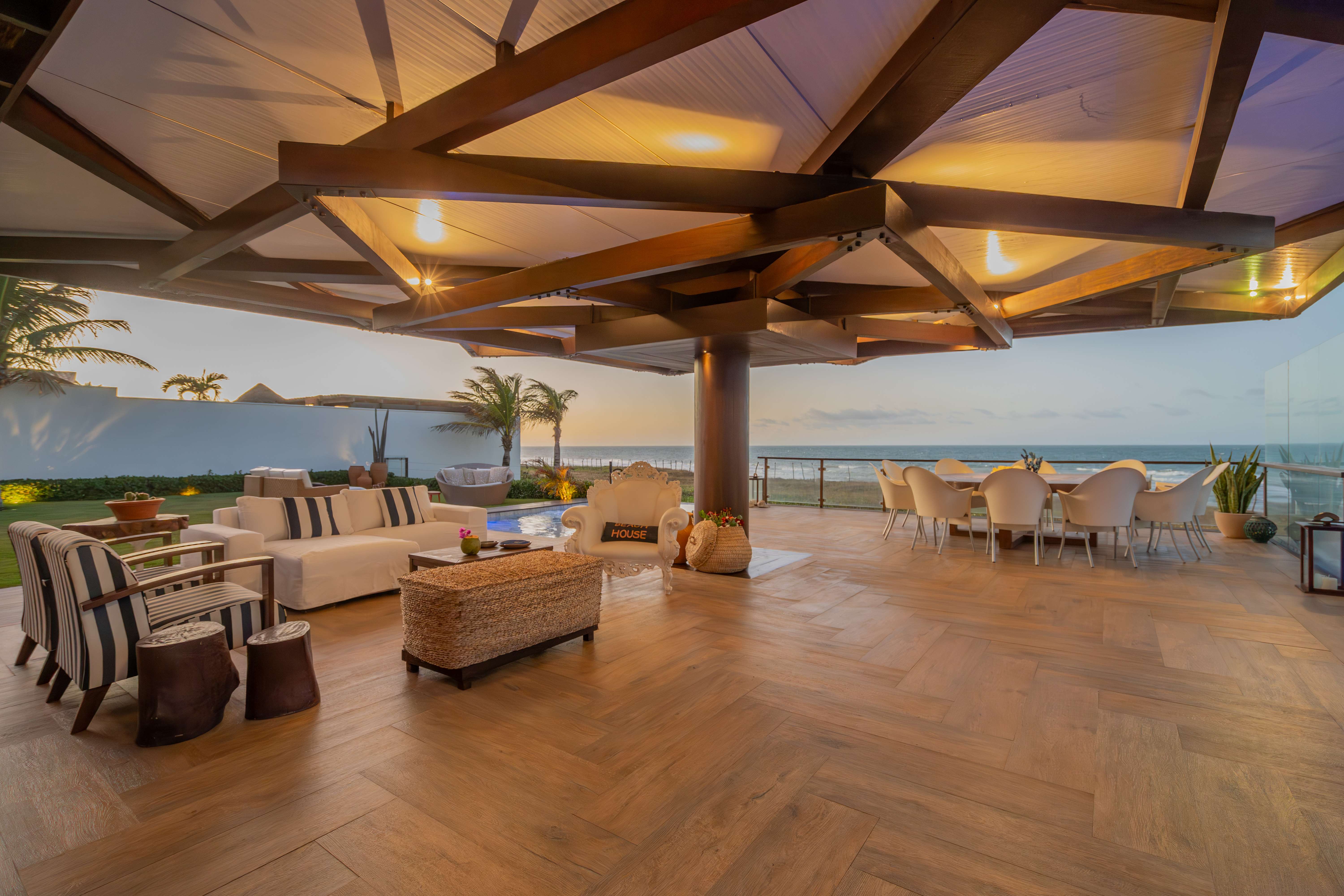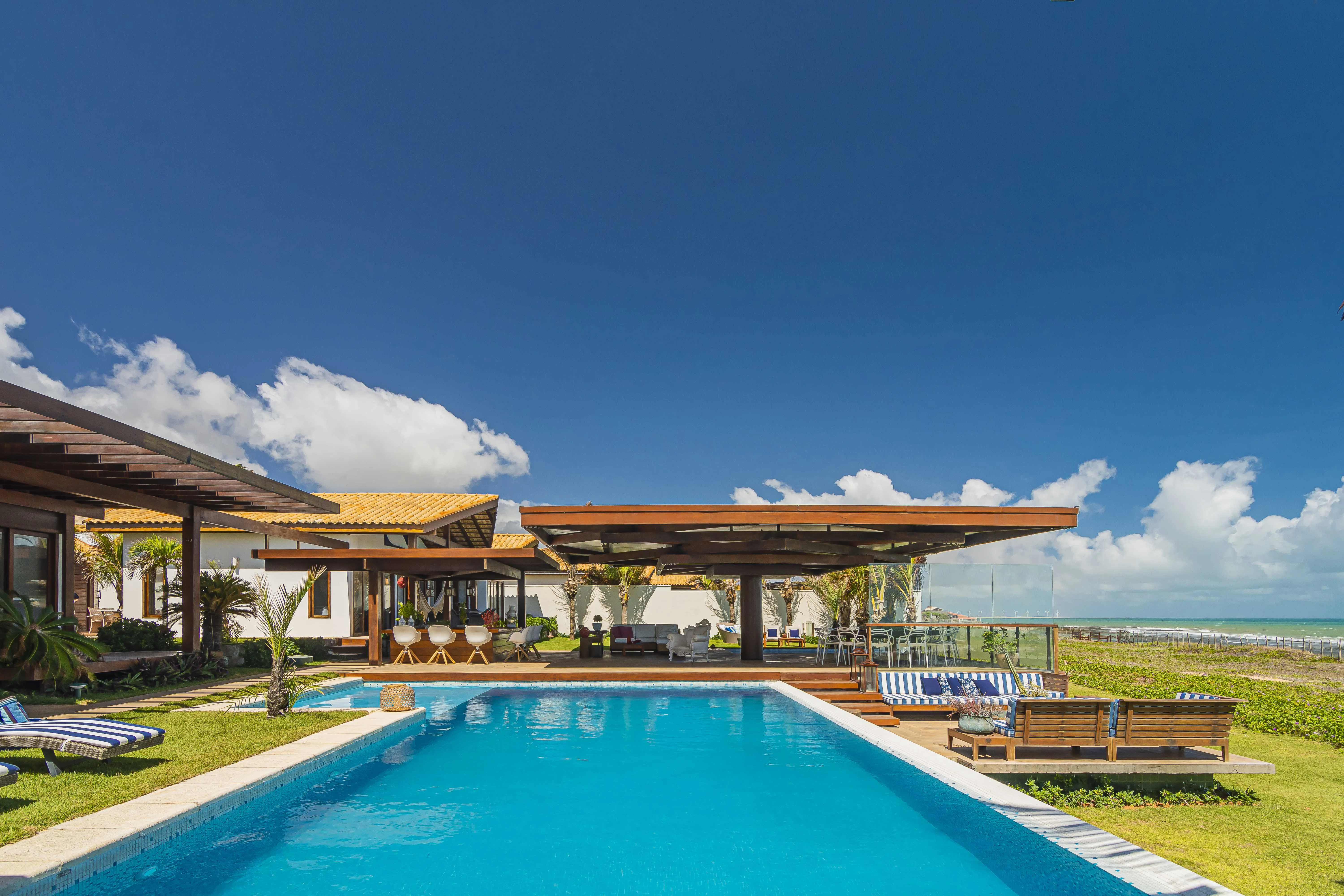 A Villa Taíba, localizada na praia da Taíba, no Ceará, é um paraíso natural com coqueirais, dunas, corais e enseadas, além de ser um ponto de destaque para surf e kitesurf. As duas casas estão conectadas por um deck central, garantindo total privacidade em relação ao condomínio. De frente para o mar, oferece vista espetacular e duas piscinas, uma de borda infinita e outra aquecida com hidromassagem. Com 10 suítes equipadas com ar-condicionado, enxoval de alto padrão e colchões de qualidade superior, acomoda até 30 pessoas, proporcionando conforto e luxo em meio à natureza.