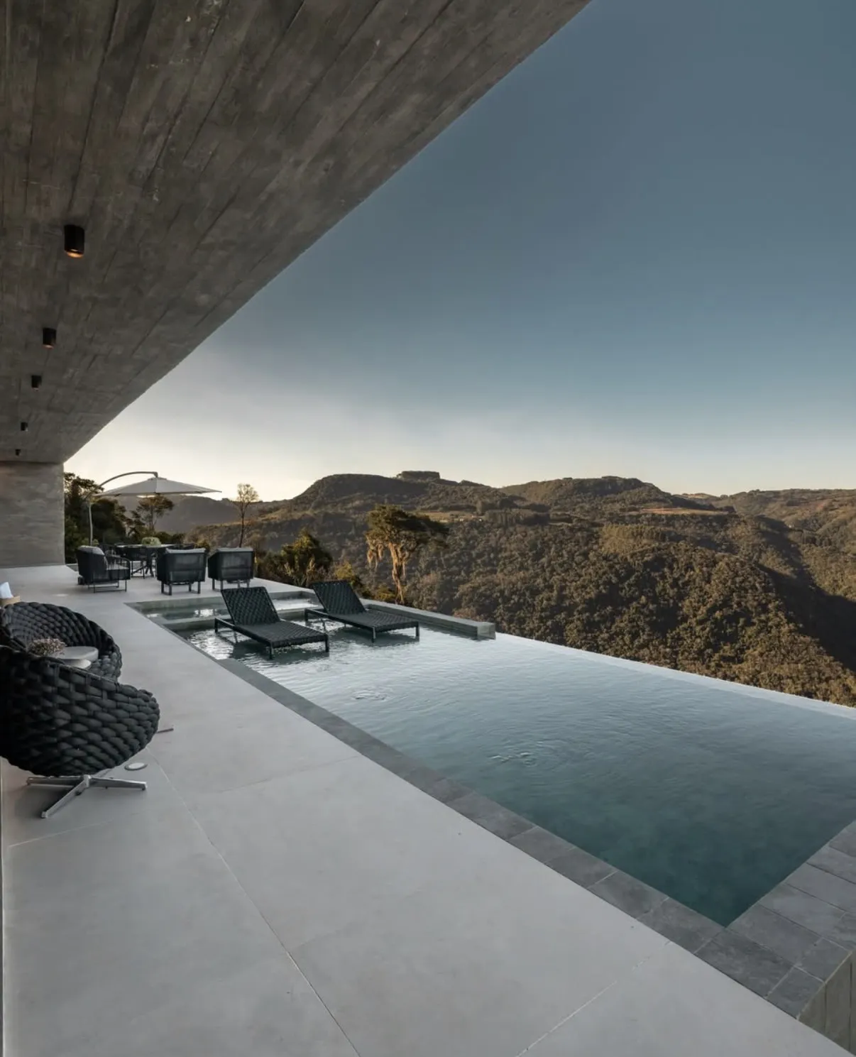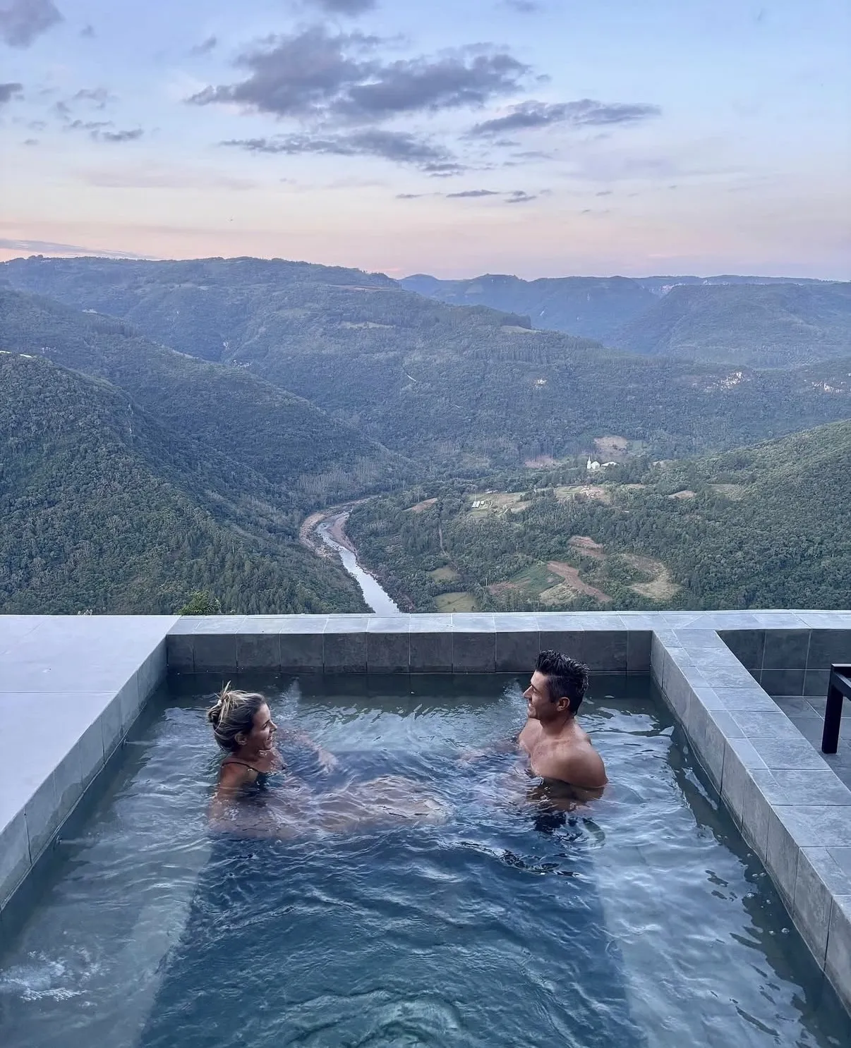 A área externa é um convite ao relaxamento, com piscina de borda infinita, spa aquecido, fireplace, lounge e jardim com horta de temperos e frutíferas. As suítes proporcionam total conforto: duas com cama queen e uma com cama de casal e beliche, todas com ar-condicionado, Smart TV, banheiro com piso e toalheiro aquecidos e vistas encantadoras para o vale ou jardim. Um refúgio que une elegância, conforto e bem-estar em cada detalhe.