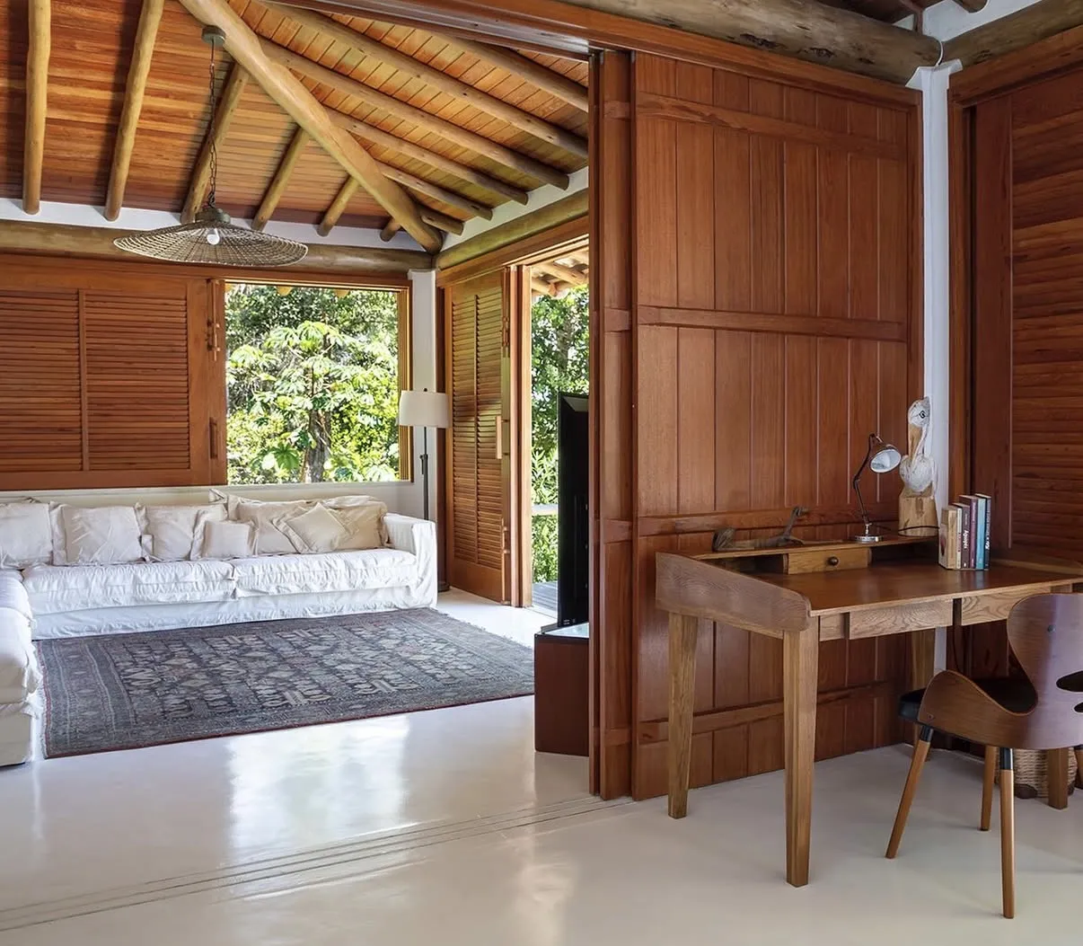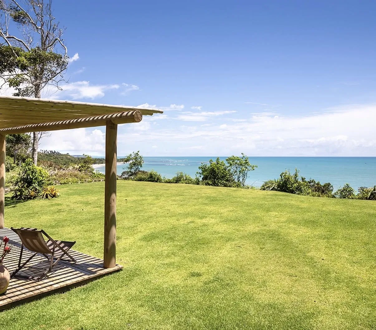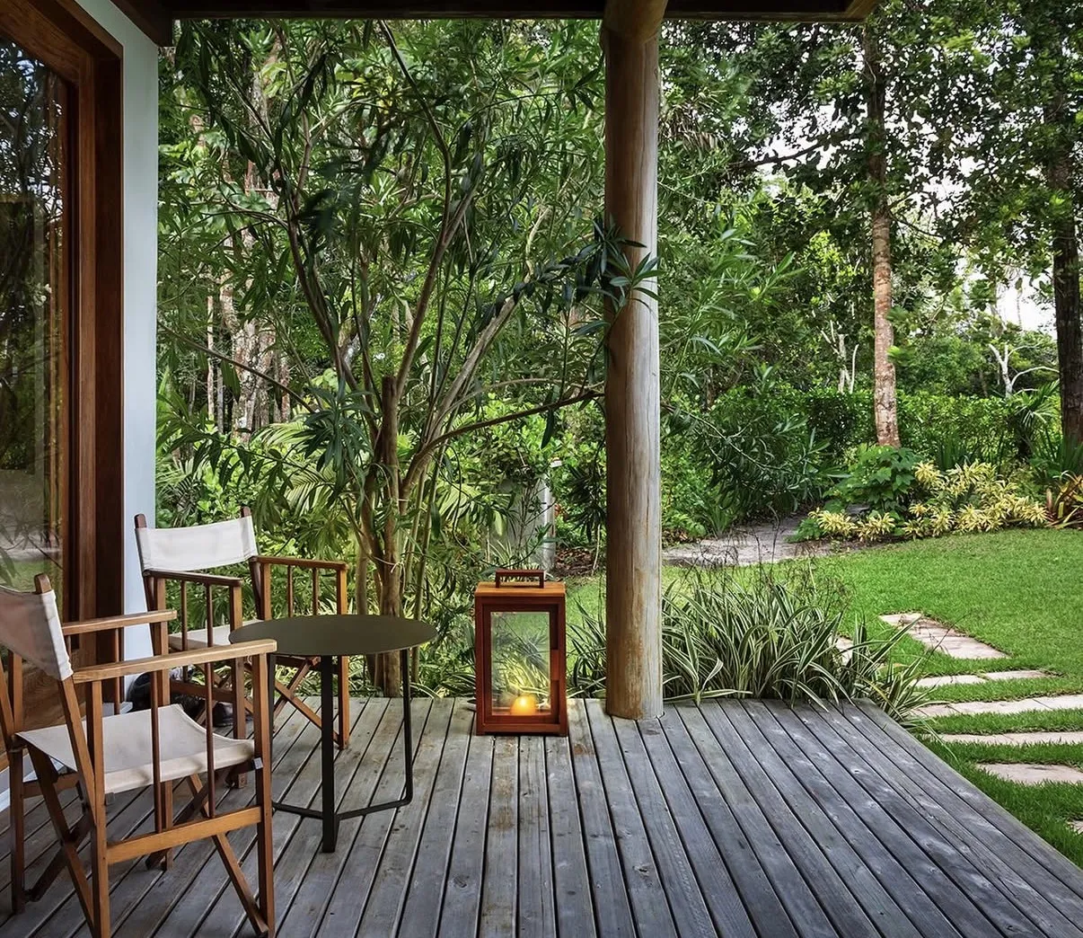 A Casa Maré é um refúgio elegante que combina conforto e sofisticação em cada ambiente. Projetada para oferecer bem-estar e praticidade, possui uma arquitetura acolhedora e funcional, perfeita para quem busca dias tranquilos em meio a um cenário encantador. A suíte do piso superior conta com cama king-size, ar-condicionado, closet, mosquiteiro e uma vista privilegiada para o jardim, enquanto o piso térreo abriga uma segunda suíte com cama adicional de solteiro, ideal para famílias ou pequenos grupos.