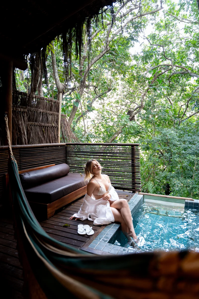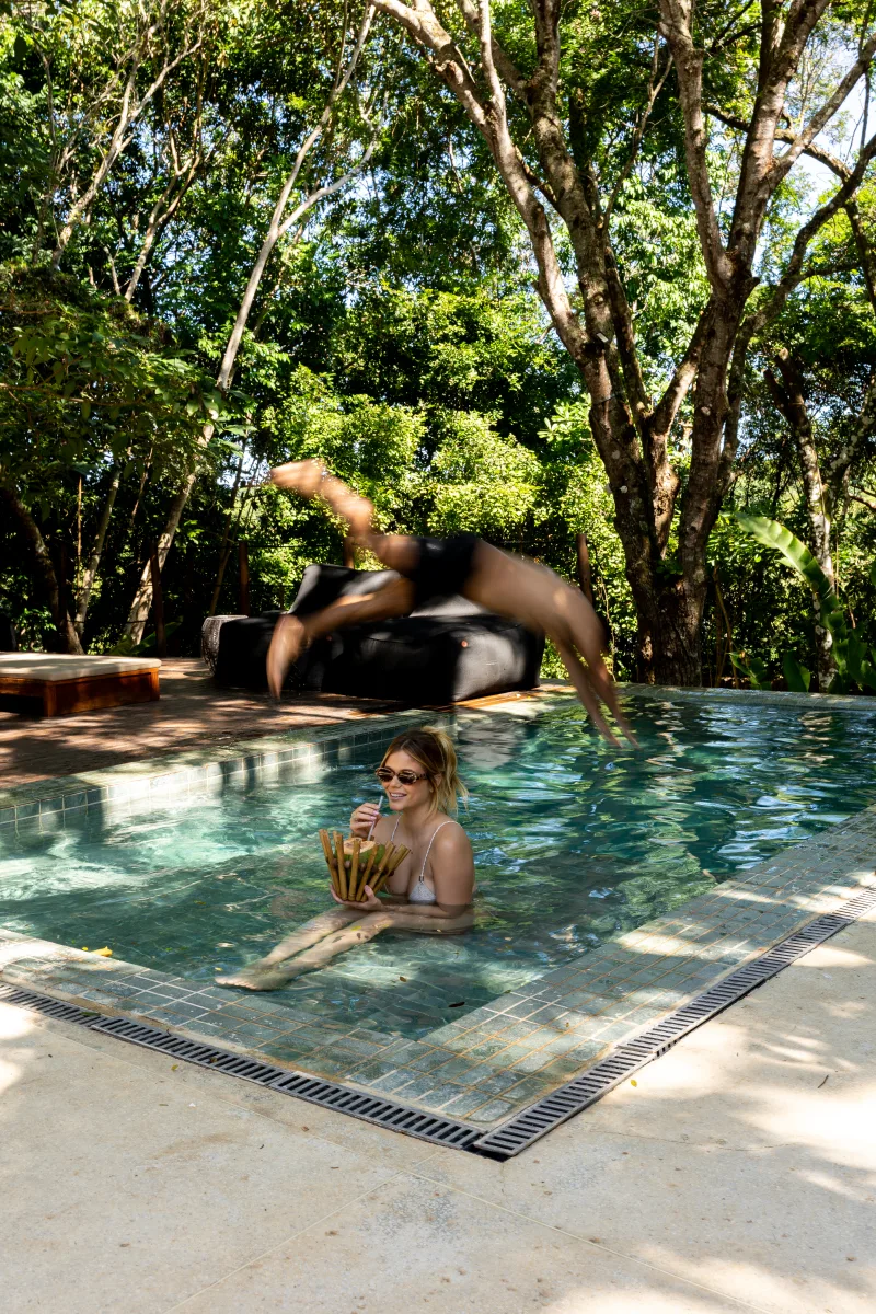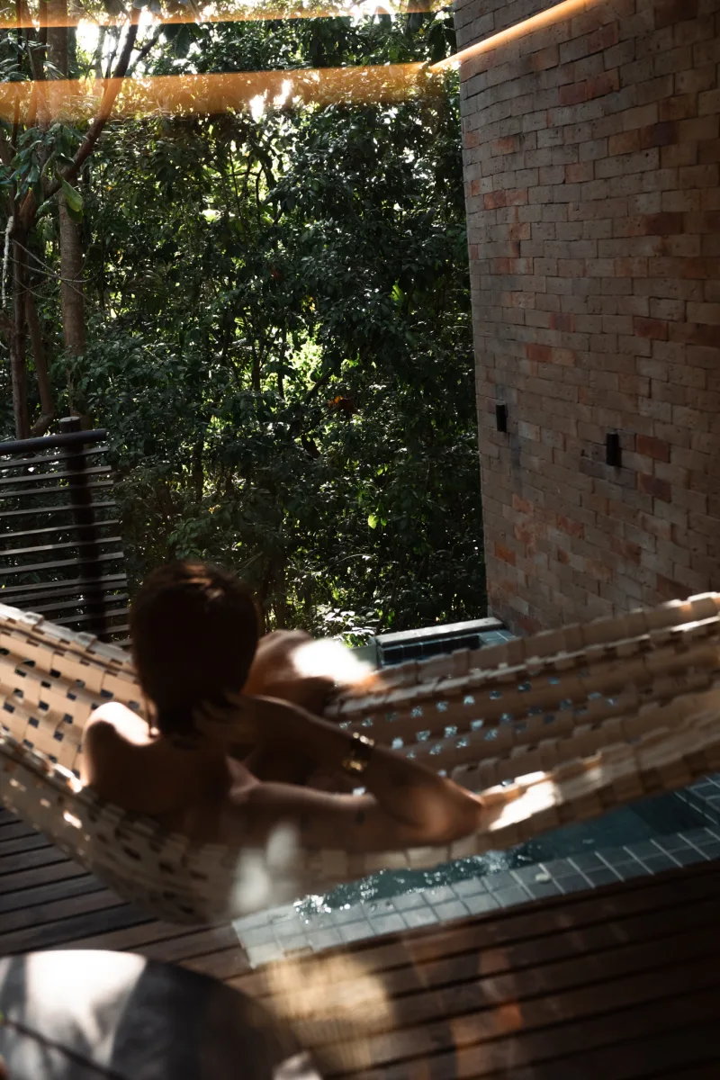 O hotel está inserido em uma área de Mata Atlântica preservada, favorecendo a integração com a paisagem e um ritmo de estadia desacelerado.